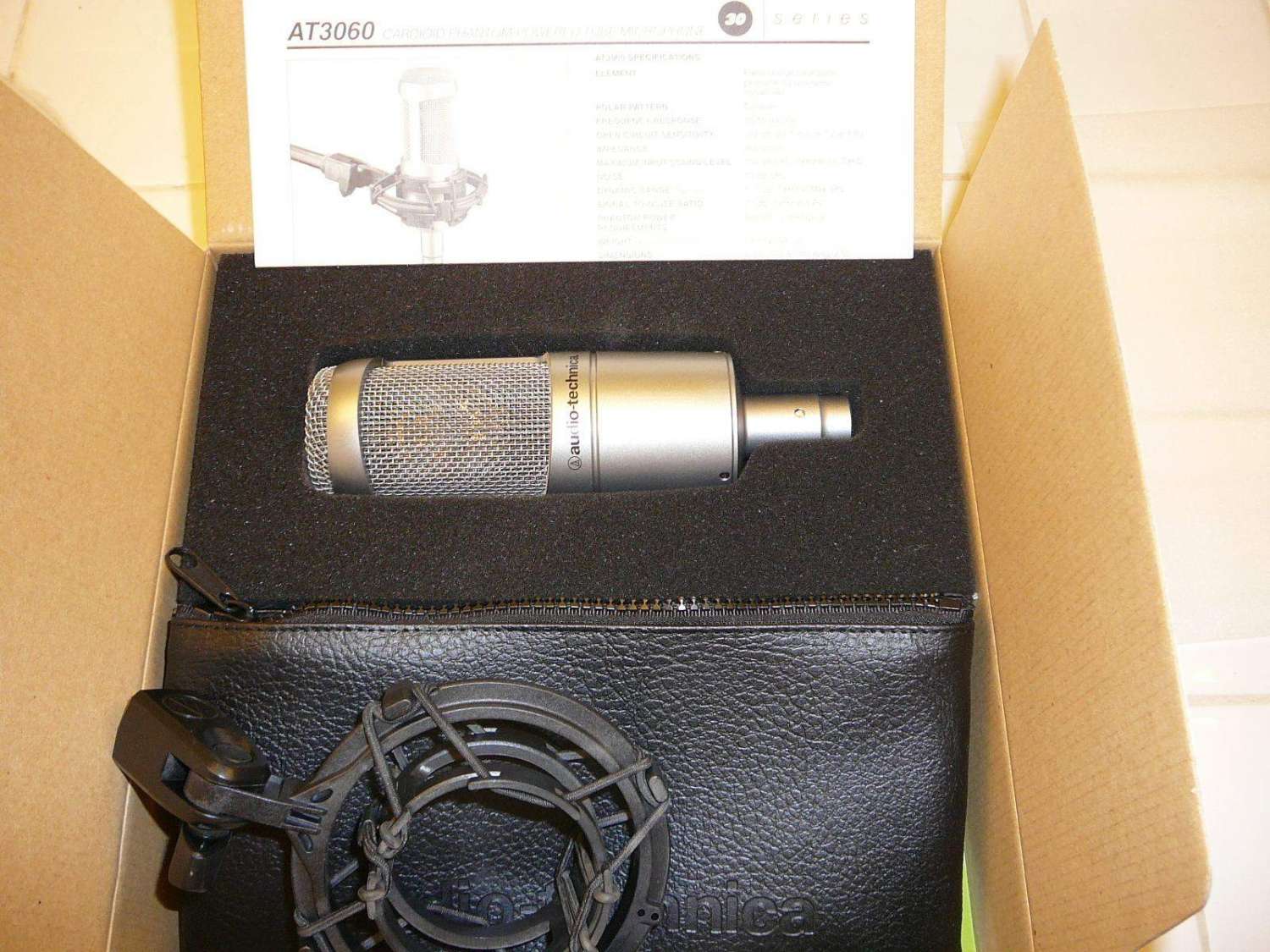 Ламповый микрофон AT 3060 имеет большую мембрану, кардиоидную диаграмму направленности, трансформаторный выход. Частотный диапазон от 50 Гц до 16 кГц, чувствительность 25,1 мВ/Па, максимальное звуковое давление 134 дБ, эквивалентный уровень шума 17 дБ, номинальный импеданс 400 Ом. В отличие от большинства других ламповых микрофонов AT 3060 работает от фантомного питания (48 В, 3 мА). Лампы отобраны вручную и подвержены искусственному старению, есть защита лампы от вибрации. Масса микрофона 540 г. Прилагаются эластичный подвес и защитный чехол.