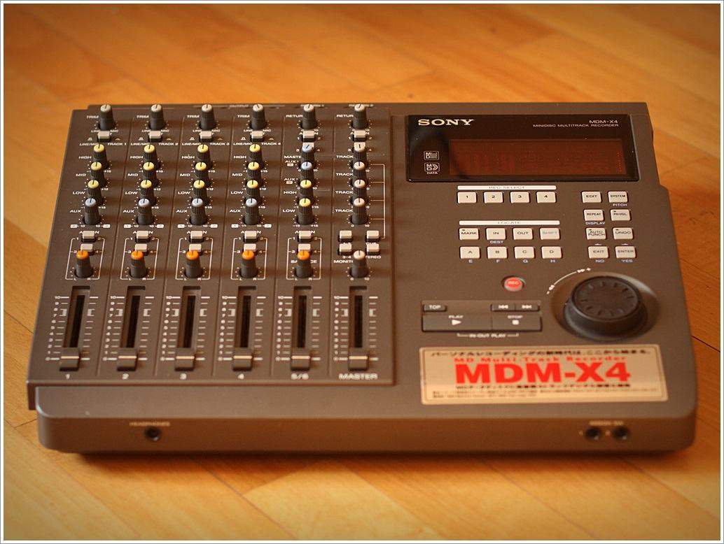 http://rus.625-net.ru/625/1997/05/aes97.htmМинидисковый магнитофон MDM-X4 базируется на формате MD DATA и позволяет осуществлять четырехканальную запись с использованием встроенного микшера (4 микрофонных/линейных входа и один стереофонический, 2 посыла и 2 возврата), а также имеет широкие возможности монтажа: внутри- и междорожечное копирование, перенос фрагментов, микширование до 16 виртуальных дорожек, микширование дорожки и внешнего сигнала с записью результата на нее же. Время записи - 37 минут. Этот многодорожечник, строго говоря, не является новинкой, так как был показан в прошлом году в Лос-Анжелесе. Однако, любое появление принципиально нового устройства многоканальной записи, на наш взгляд, вполне заслуживает неоднократного упоминания. Ведь эта аппаратура может найти самое широкое применение как в домашней записи (малые габариты, неплохое для демо-записи качество звука), так и в сплошь "фанерной" отечественной концертной практике (возможность запуска полного "плюса" и фонограммы "минус один" с одного носителя).Интересующимся - мануал: