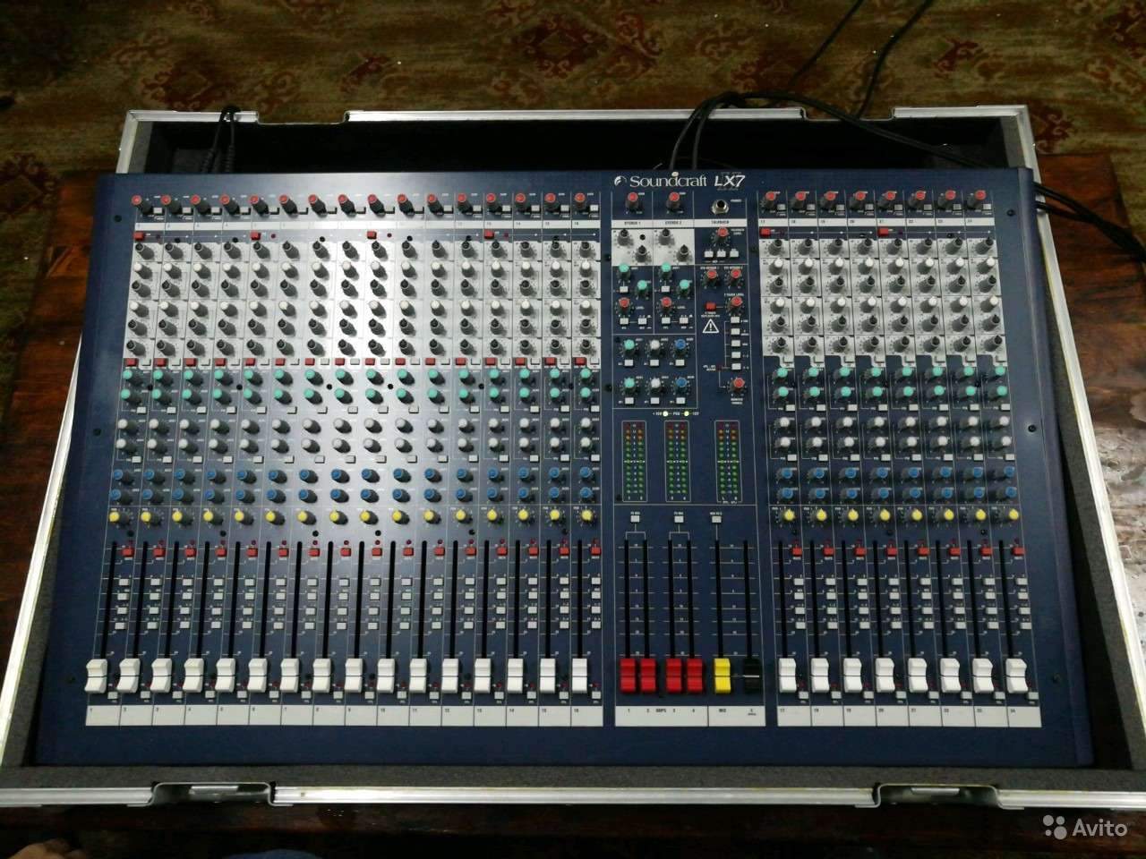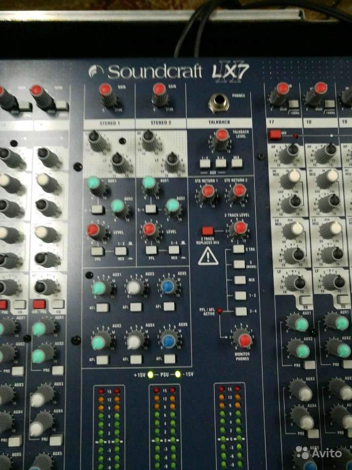 24 моно входа и 2 стерео входа + 2 стерео возврата, 4 группы, главный стерео выход и моно выход для центрального канала. На всех моно-входах 4-полосный эквалайзер с параметрической серединой. Первые 16 входов оснащены прямыми выходами для мультрековой записи, а также 6 aux для посыла/возврата на эффекты. Дополнительно имеются гнезда Tape IN и Tape OUT (RCA стерео). Консоль LX7 II работает с сигналами от 7 выходов – 4 подгруппы плюс левый, правый и центральный (моно) выходы.