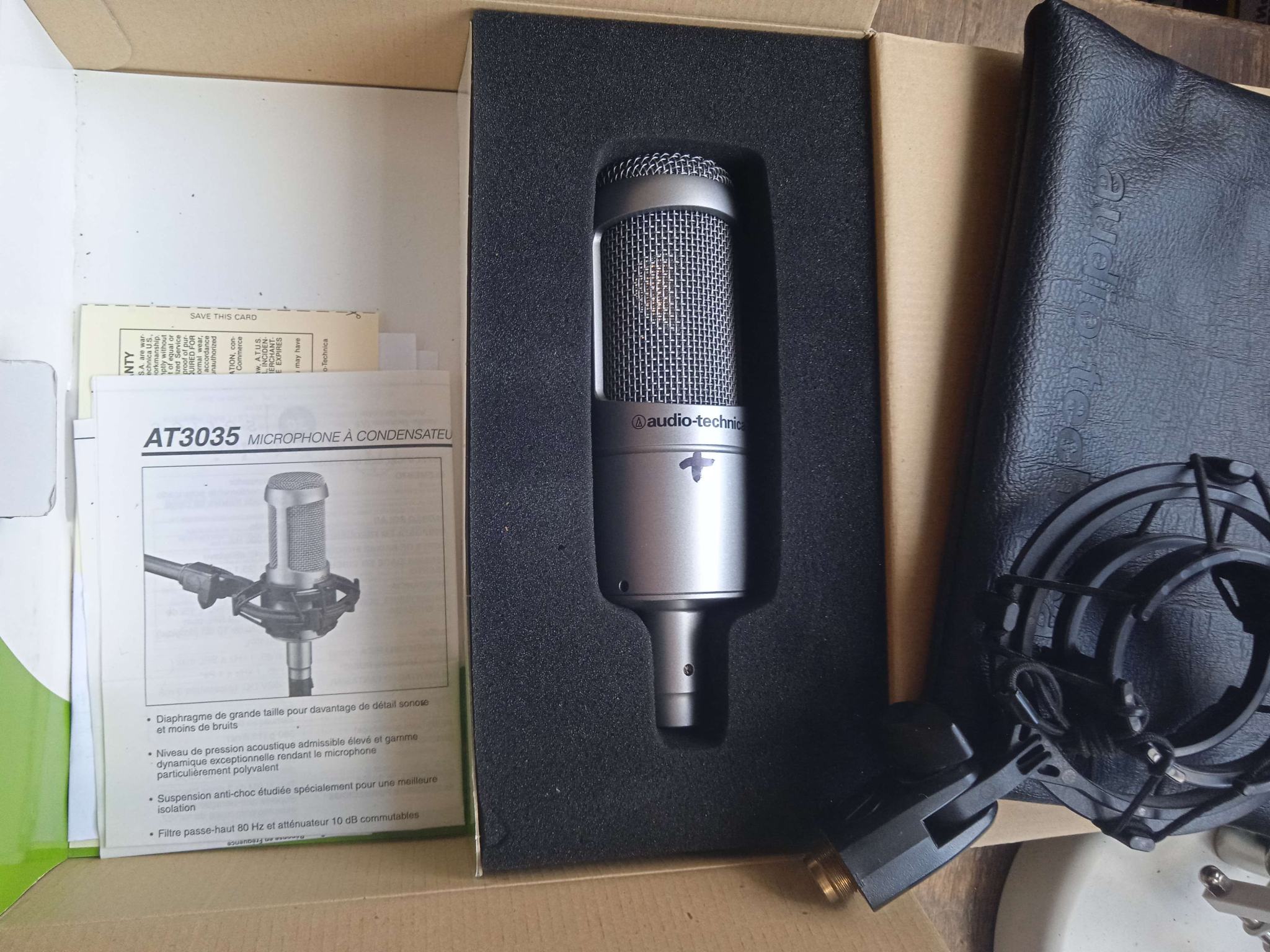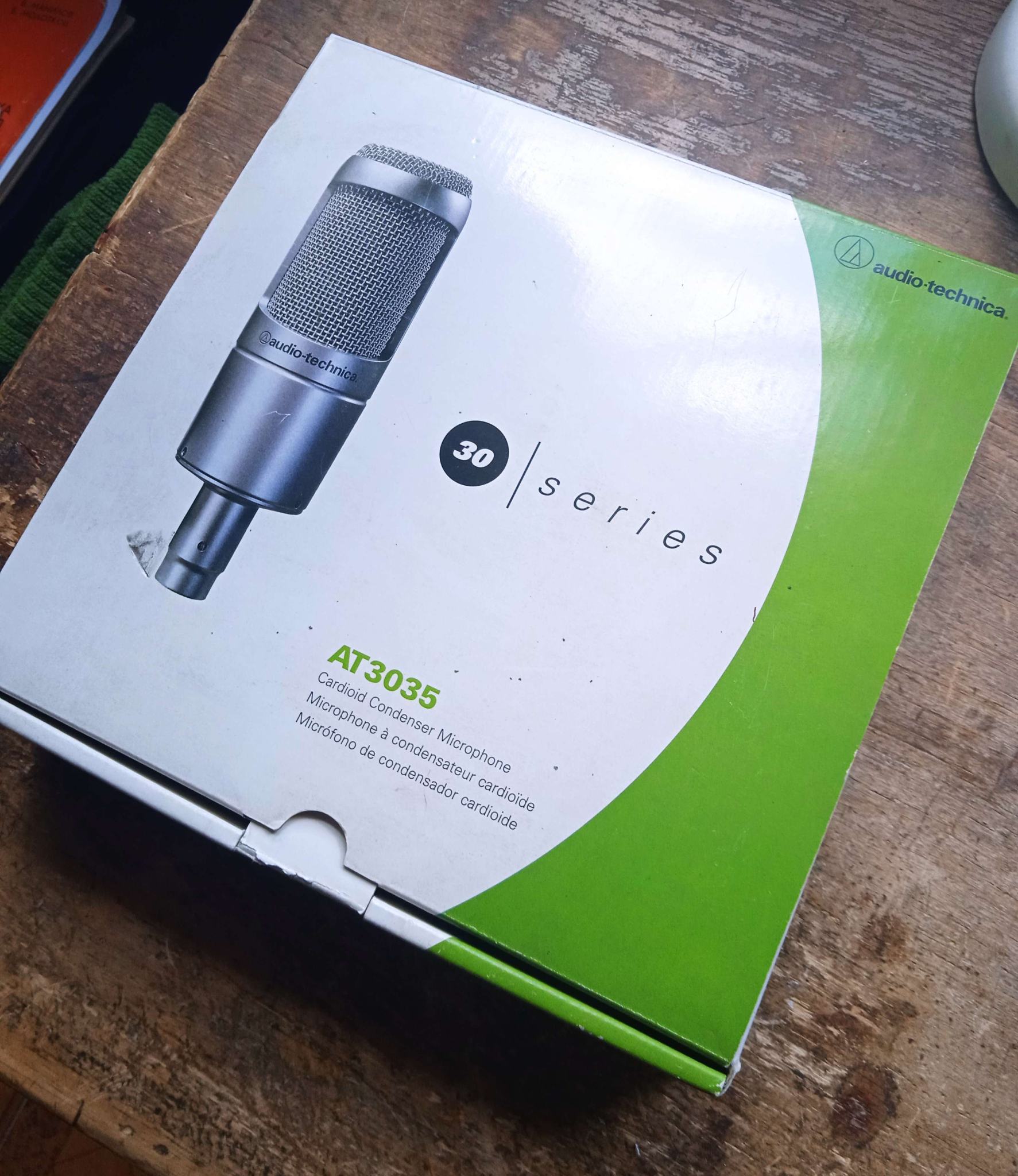 Студийный микрофон Audio-Technica AT3035 – JAPANСостояние идеальное, коробка, документы, кожаный чехол, «паук».
