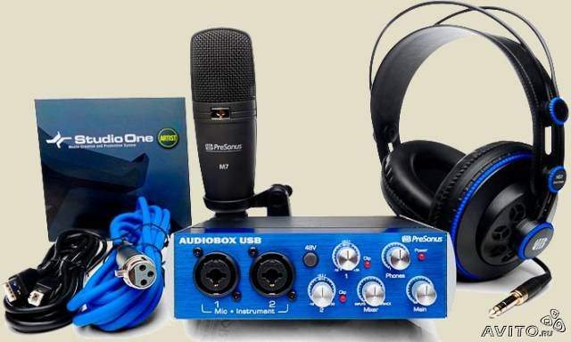AudioBox Studio Комплект для звукозаписи: AudioBox USB, студийный микрофон M7, наушники HD7, Studio One Artist, микроф. и USB кабели