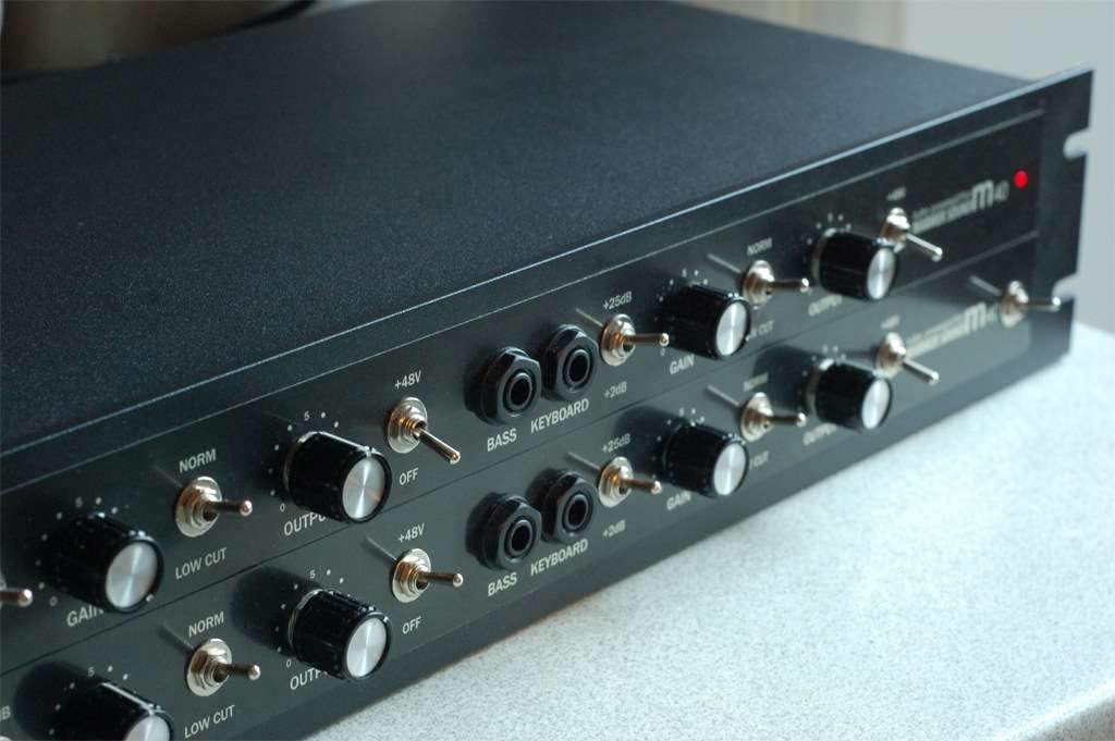 Warmer Sound М40 микрофонный/инструментальный ламповый преамп построен на базе олдскула Gates и Langevin 50-60х годов, два вакуумных триода в однотакте без отрицательной обратной связи дают около 40дБ усиления и превосходный чистый ламповый звук. Есть дополнительный каскад усиления (ручка Gain), который позволяет разогнать лампу по входу, подрезать динамический диапазон и добавить гармоник насыщением. Две лампы 12ax7.