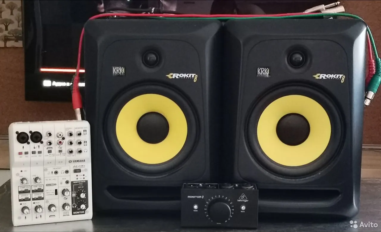 мониторы пара KRK Rokit 8g3, микшер-звуковуха yamaha ag06, контроллер behringer