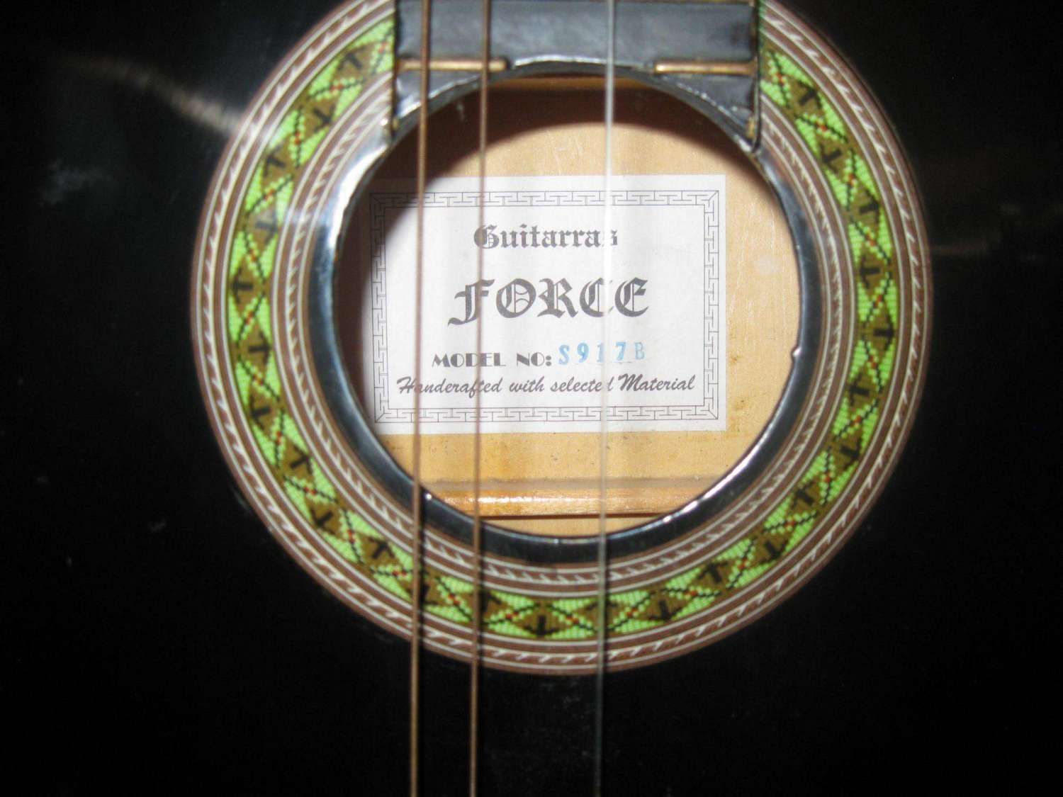 Помогите определить происхождение этой гитары и сколько она может стоить. В инете никакой инфы о гитарах с таким названием. На наклейке написано: "guitarras FORCE Model № s917b Handcrafted with selected Material"