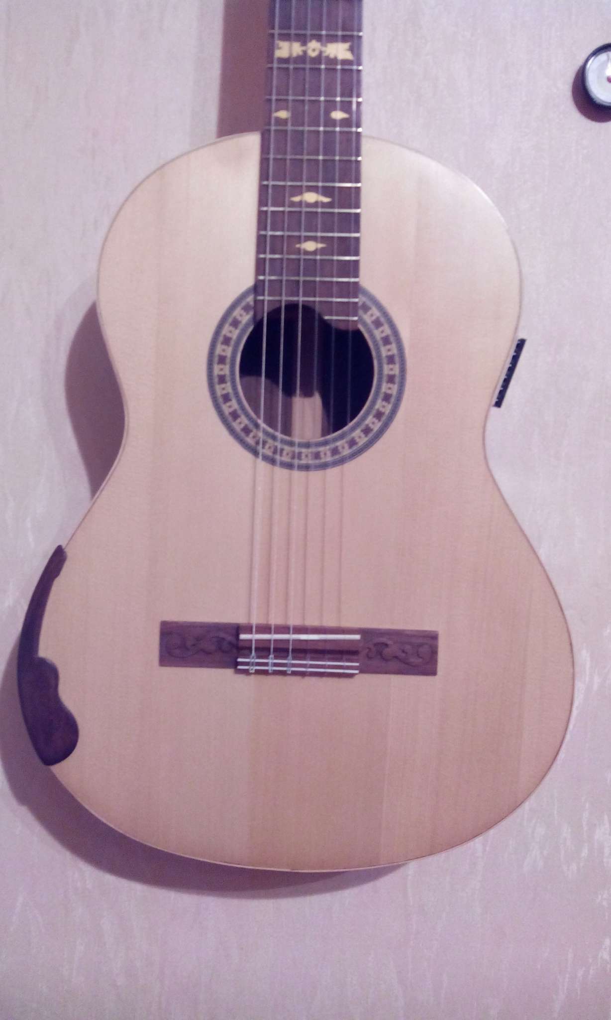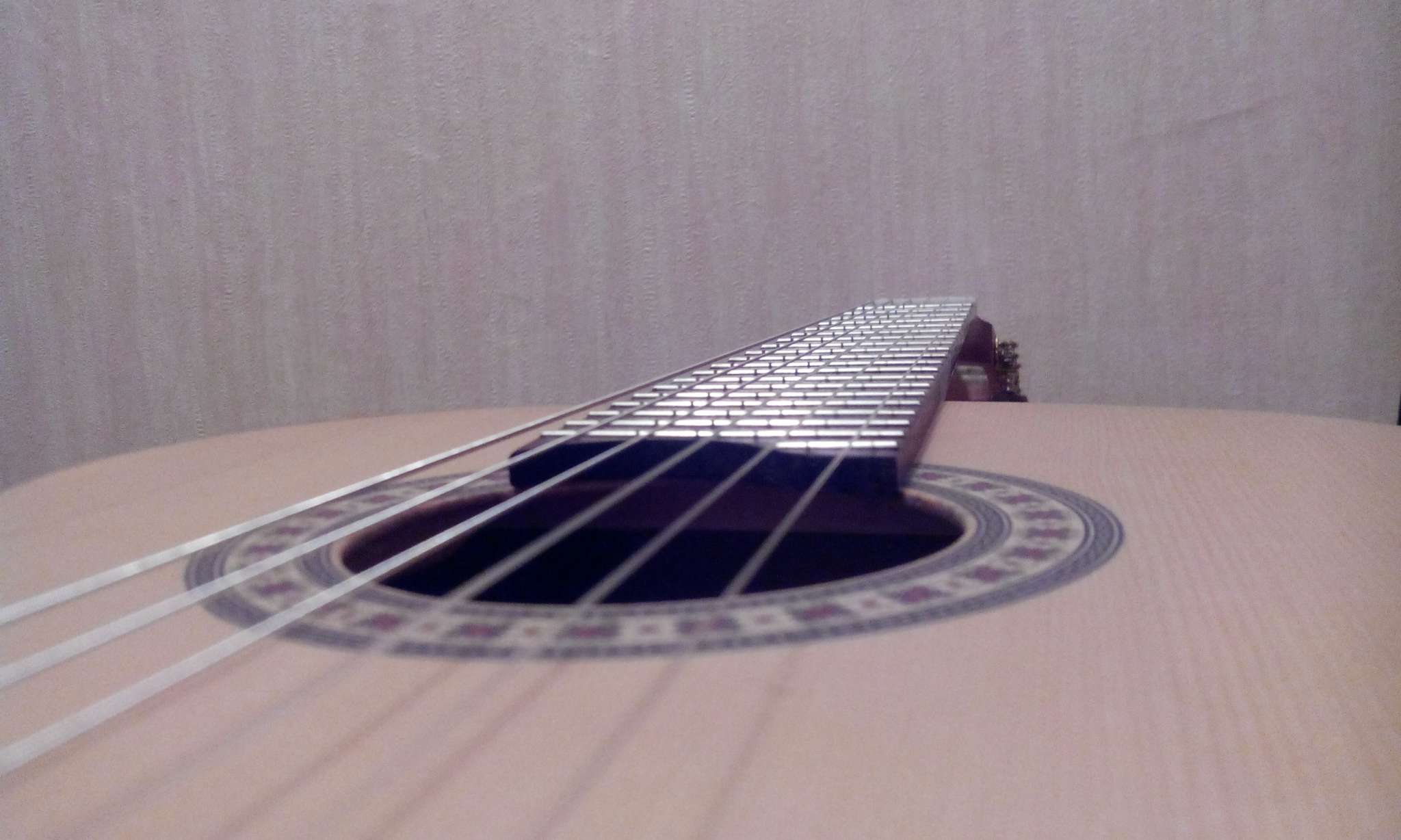 СТРУНЫ: нейлон. Поменял их сразу, поскольку стоковые, мягко сказать, не очень… Поставил Саварес Корум Альянс высокого натяжения. Мне очень нравятся. Звук сбалансировался. Добавилось басов. Гитара звучит очень гармонично. Сустейн продолжительный (не замерял). Провалы и волчки по всей длине грифа тоже не слушал.