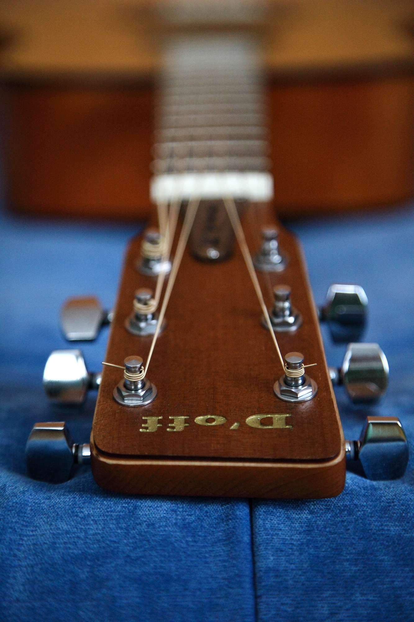 Ну, гриф тут, так сказать, универсальный: т.е. использован тот же самый, что ставится на обычных праворуких инструментах, поскольку его профиль симметричен. Видимо, посчитали, что направление скоса головки не столь важно, чтобы отдельно точить новый зеркальный гриф, взяли готовый стандартный. А вот шпинёк для ремня - это уже невнимательность исполнителя: могли бы переставить куда положено, а старое отверстие аккуратно заглушить и зашпаклевать.
