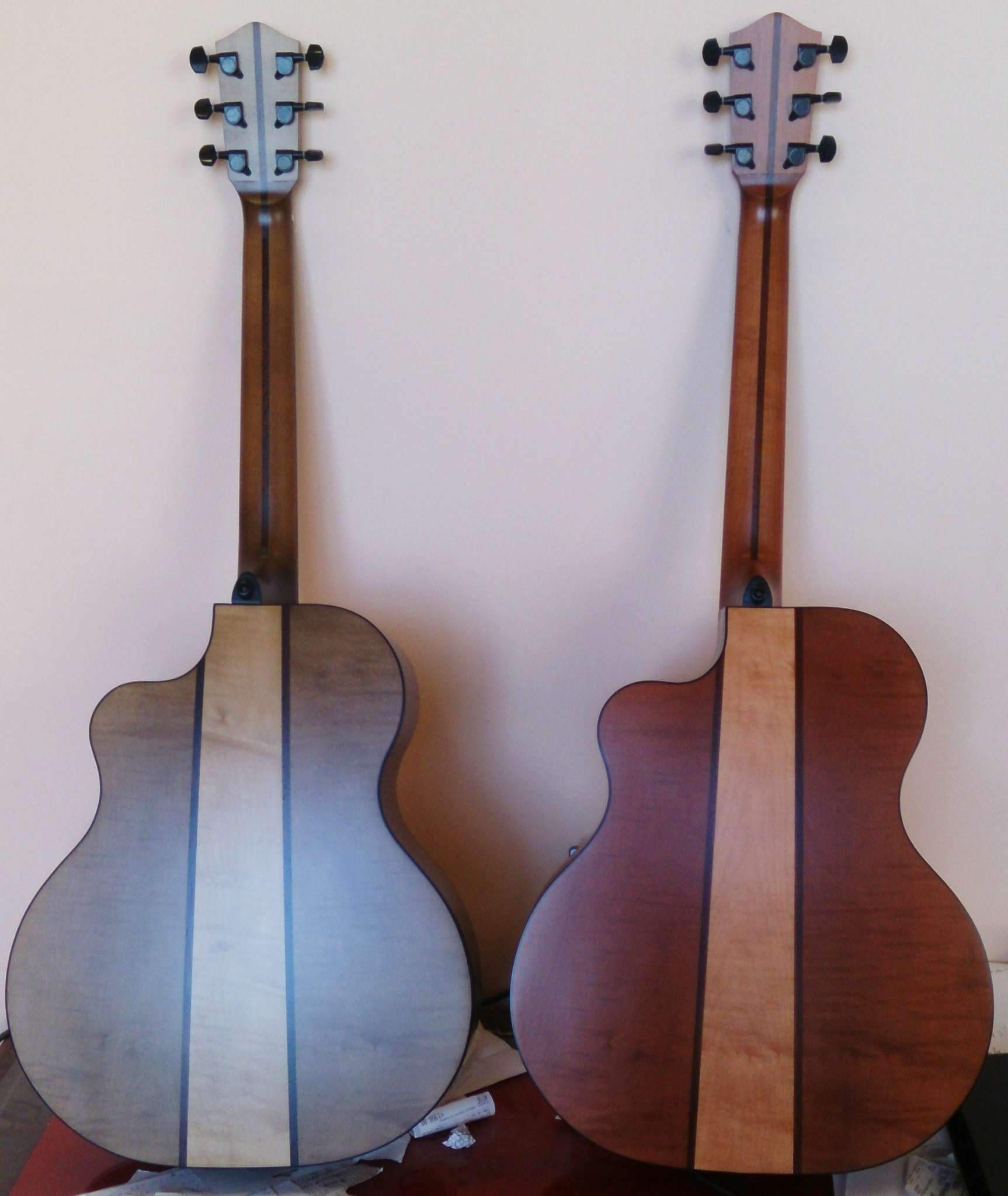 Надо также понимать, что эти фотографии не передают всей красоты инструментов. Кто видел в живую инструменты Дофф, знает, как завораживающе выглядит текстура дерева даже при простоте отделки. А здесь шикарные по текстуре материалы плюс вариация с колером, по разному помогающим этой текстуре раскрыться. Сделано с любовью и экспериментаторским задором. Очень здорово получилось, как по мне.