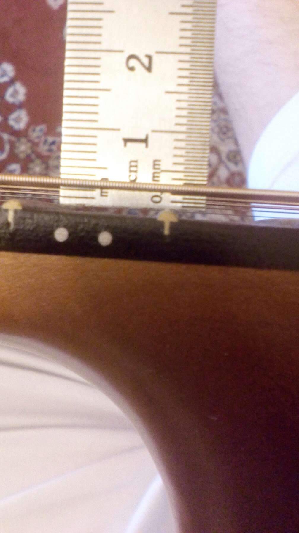 Порожек нижний у вас еще высокий, можно сточить его еще на 1,5-2мм. - это опустит струны над двенадцатым ладом на 0,75-1мм соответственно.