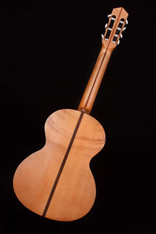 ), верхняя дека кедр, елка, гриф красное дерево) так длина корпуса 490 мм, ширина корпуса нижней части 380 мм, верхней 270 мм, толщина корпуса 95 мм в самой широкой части .