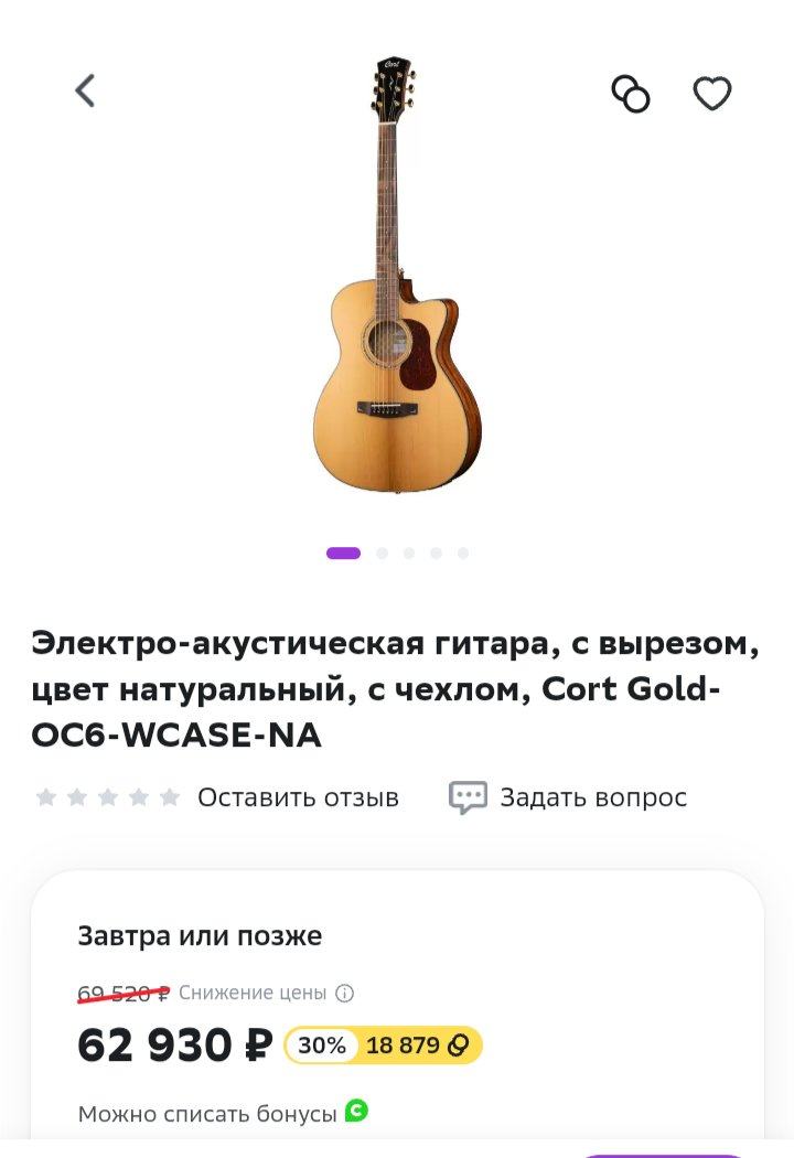 ... и добавил:Вот гитарка - с европы выйдет примерно 700 евро. То есть примерно 60к. У нас 63к, но еще насыпят бонусов 19к. На которые потом можно купить хотя бы еды. Или химии бытовой. Или звуковую карту с микрофоном. Чем плохо? И это не один вариант ведь. По факту - те же 45к и выходят А с Кепма - поезд ушел. Все хорошо в свое время
