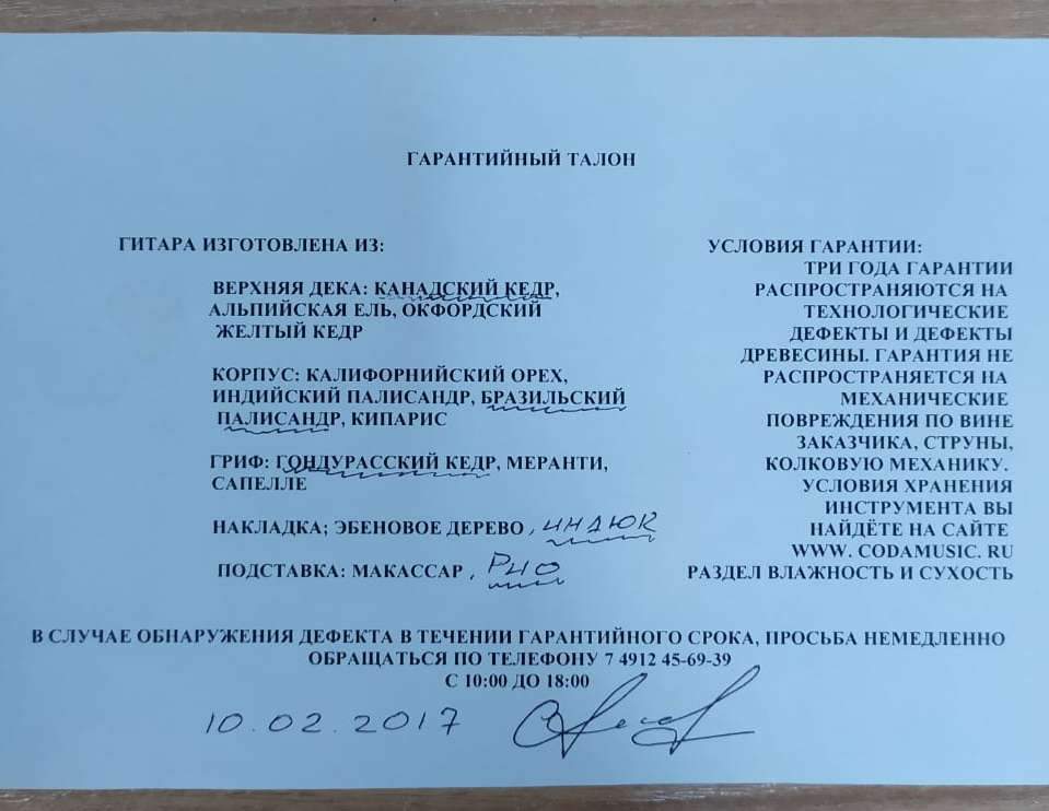 5) При чем здесь талон "Коды"? Я брал гитару у тебя. Пора бы иметь собственные гарантийки.