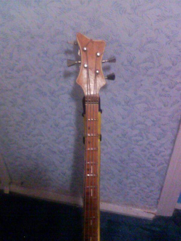 Корпус пустой легкий. Гриф цельный буковый без анкера и толщиной почти как у контрабаса. При креплении ремня на корпус перевешивает сильно. а на грифе удобно и при его толщине не поведет ни когда.