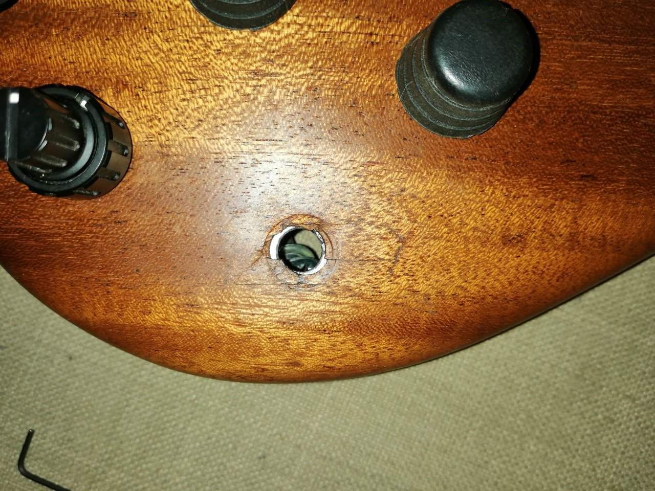 Есть какой-то косяк с посадкой грифа, явно виден зазор между грифом и корпусом по плоскости сопряжения, или корпус усел неровно по торцу, или там какой-то колхоз в кармане, еще не смотрел, но подтяжка шурупов грифа ничего не дала, затянуты плотно. Придут новые струны, сниму гриф, гляну