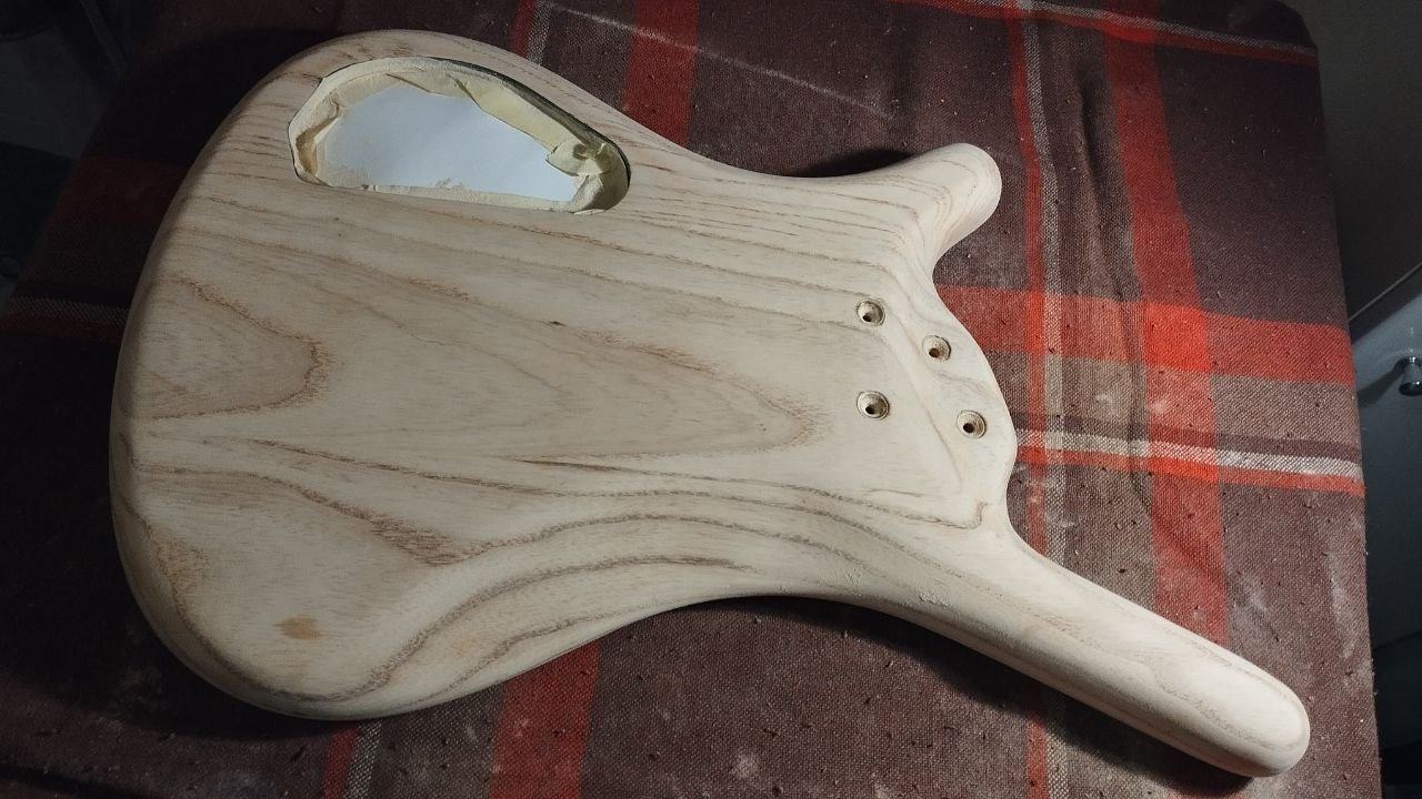 Я их зашпаклевал с пылью от шлифования, но т.к ясеневой пыли было больше, то шпаклёвка чуть темнее чем клён. Я решил так и оставить, а когда придет пора шлифовать снова то выковырию темные точки и зашпаклюю светлым.