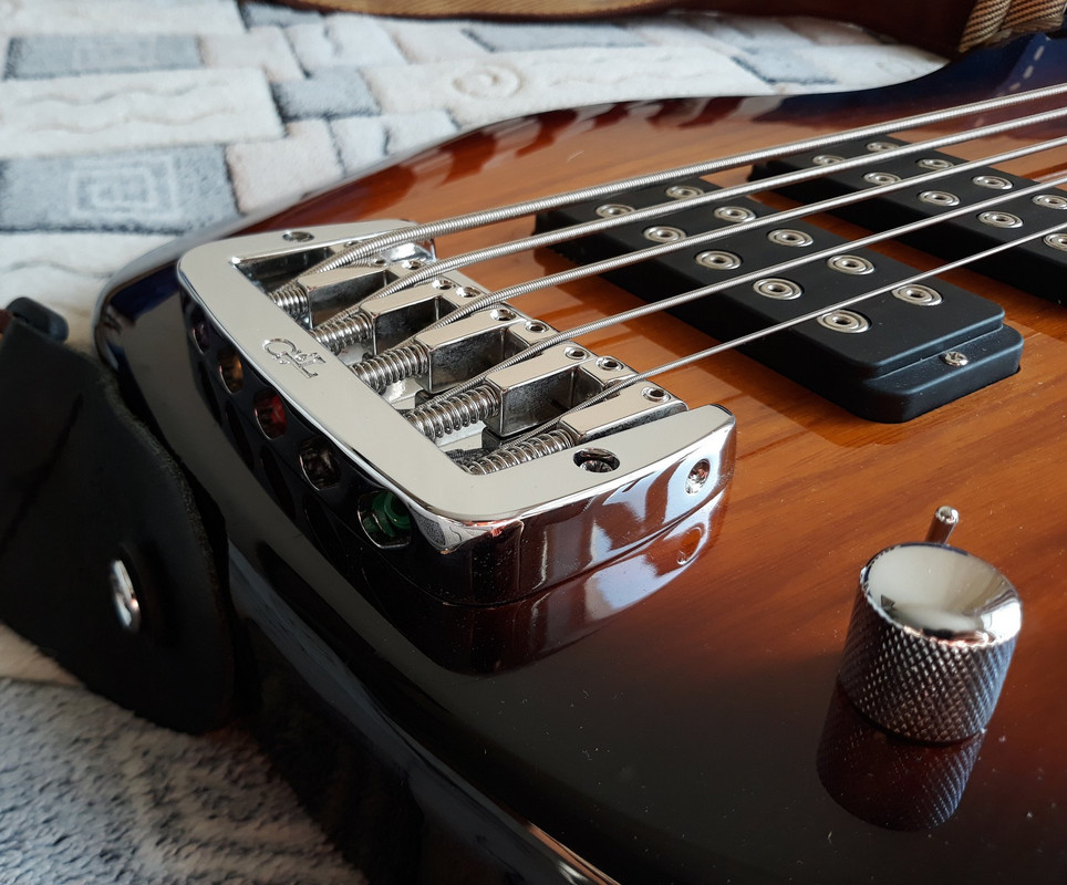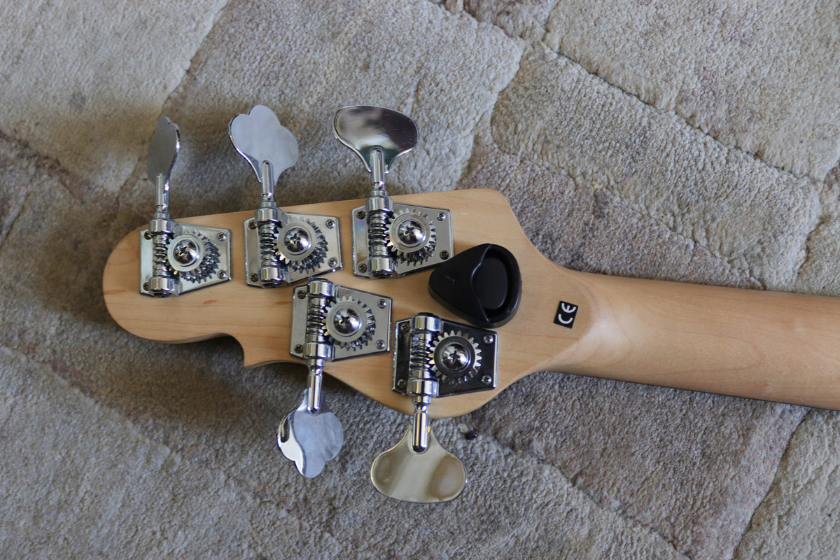 Общие впечатленияФорма корпуса не вполне как у Пресижна, у G&L свой стиль. Но, тем не менее, всё удобно и привычно. Баланс на ремне в полном порядке, башкой не клюёт. Небольшой неожиданностью оказалось то, что башка 3+2 с колками на две стороны оказалась очень широкой и не во всякий чехол влезает. Поэтому мне пришлось частично сточить бутоны у колков B и G.