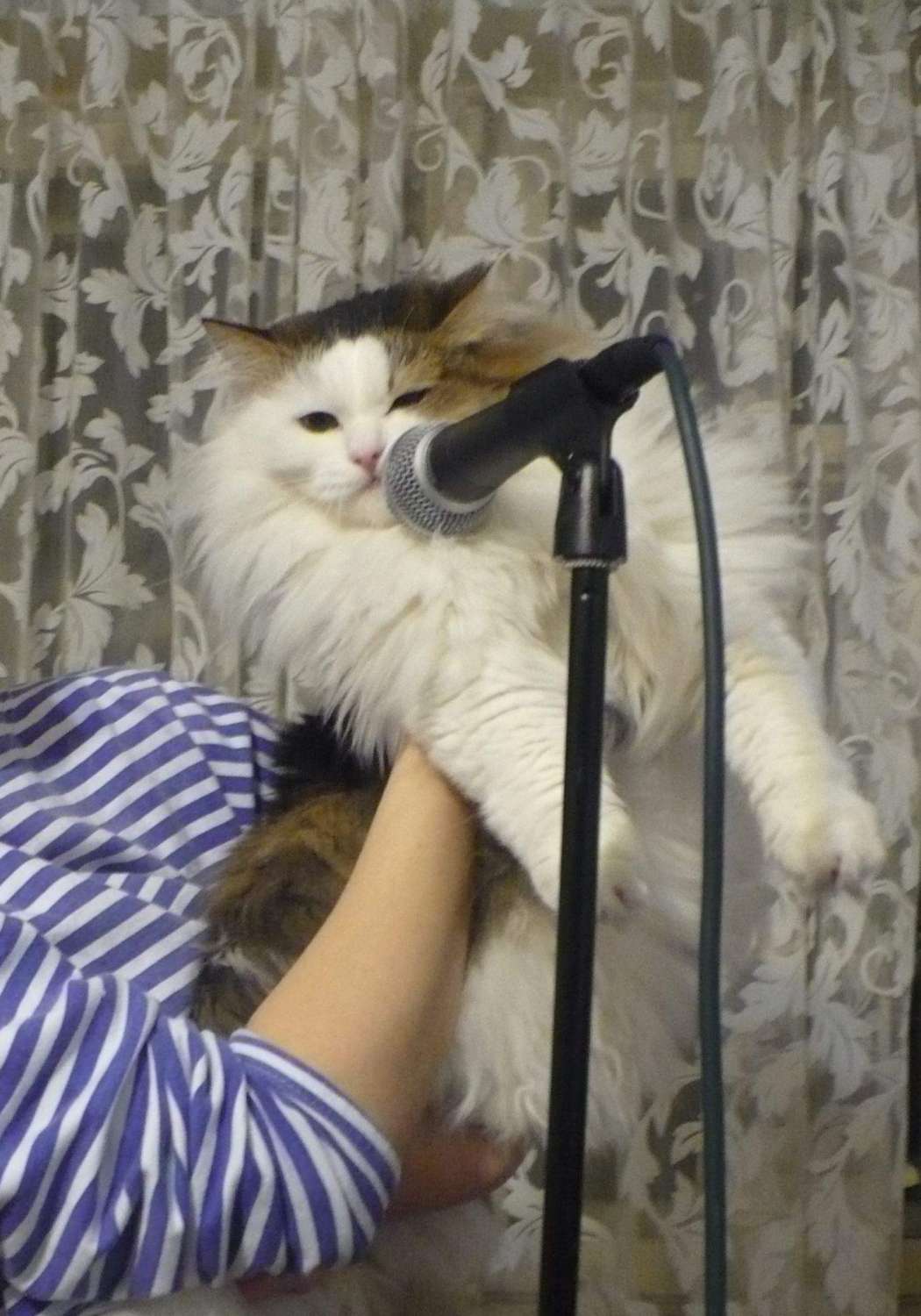 Несколько слов о звуке. Как утверждает гугл, кошки способны издавать до 100 звуков, то есть в 10 раз больше, чем собаки. Диапазон моего котэ - от едва слышного мурлыкания, но оглушительного рева (к примеру если ему случайно наступить ему на хвост), но при всем при этом инструмент очень капризный и практически невозможно предугадать, какой звук он выдаст в следующий момент. Применительно к музыкальной сцене: думаю, что этот котэ мог бы украсить своими звуками как выступление гламурной певицы, так и шоу экстремального метал-бэнда. Все будет зависеть от настроения котэ, микрофона и обработок (сэмплы прилагаются).