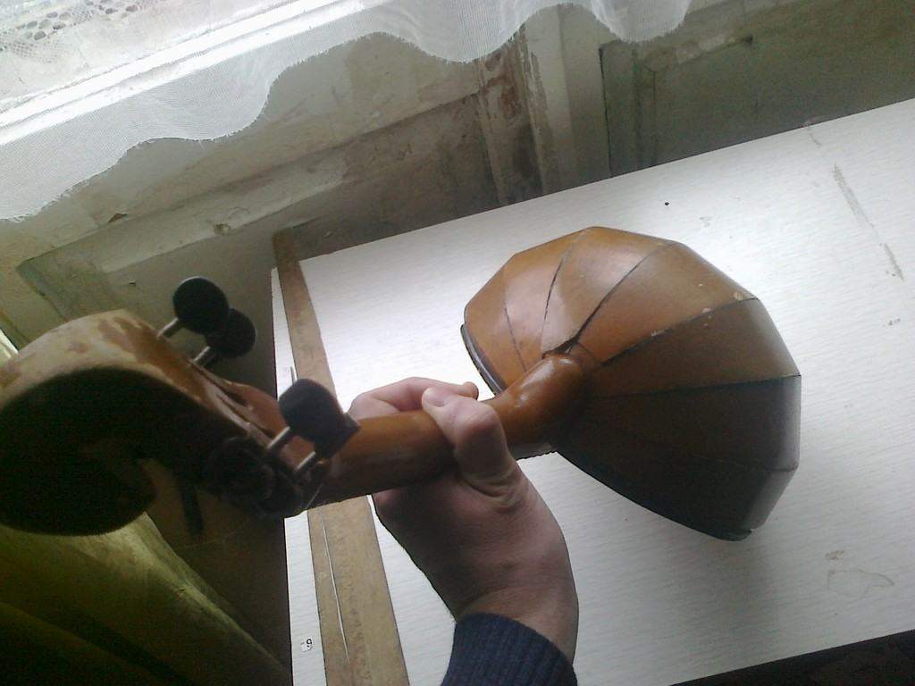 ) и вырезал по контуру (решил не гнуть ровную заготовку, т.к. опыта нет и потому решил обойтись и так - главная задача соединить деку и клепки в одно целое)