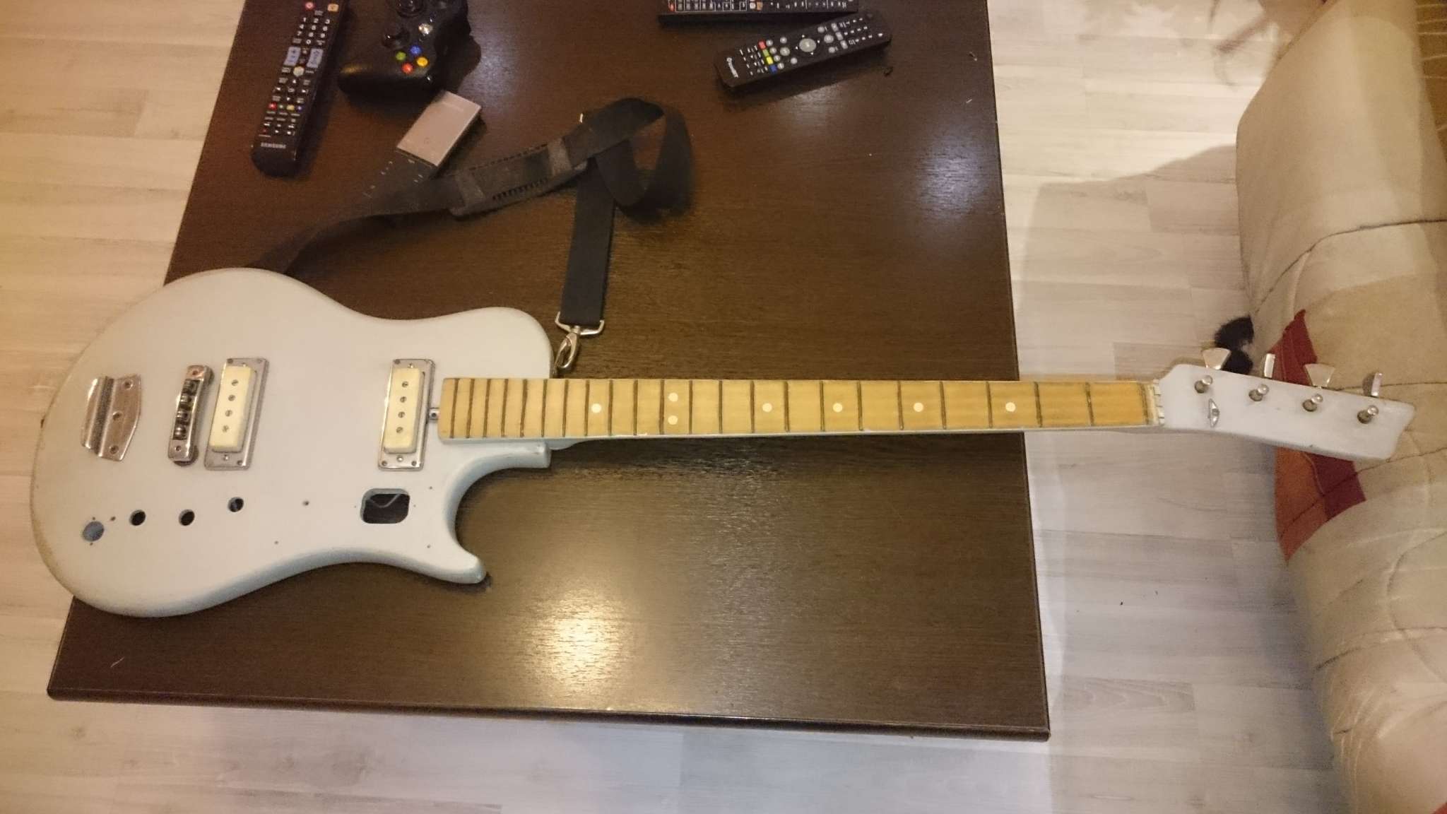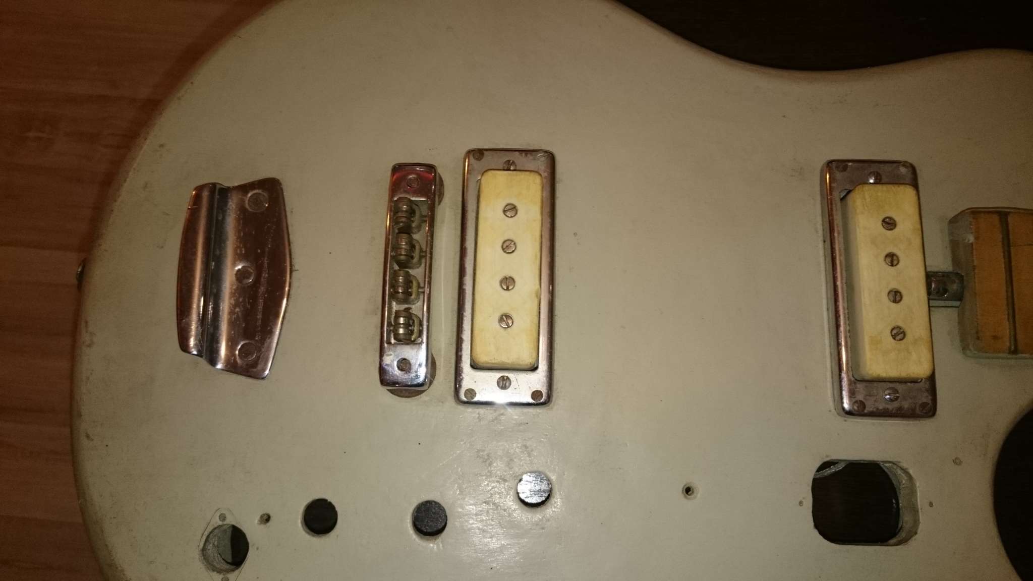 . Были ещё ржавые струны, я их первым делом отстриг и в ведро засунул. Задняя крышка отсутствует, никаких маркировок. Надеюсь на Вашу помощь в определении гитары, а так же характеристику её состояния.