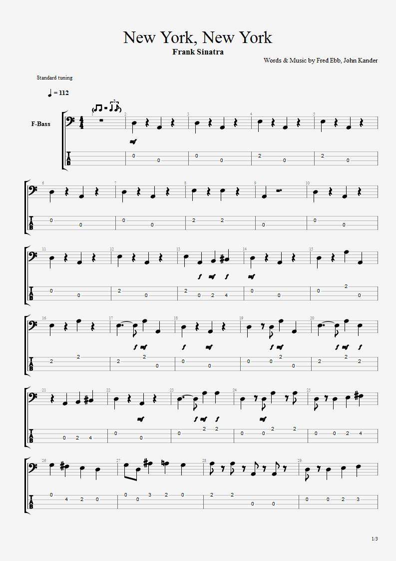 Frank Sinatra New York New York Bassline PDFFrank Sinatra New York New York Bassline JPG Part 1Frank Sinatra New York New York Bassline JPG Part 2Frank Sinatra New York New York Bassline JPG Part 3Frank Sinatra New York New York for GuitarProУсловия участия в конкурсе прежние - записать и свести свой трек в формате mp3 16 bit, stereo, 44,1 kHz, 160 kbps, и прислать его на почту нашему модератору