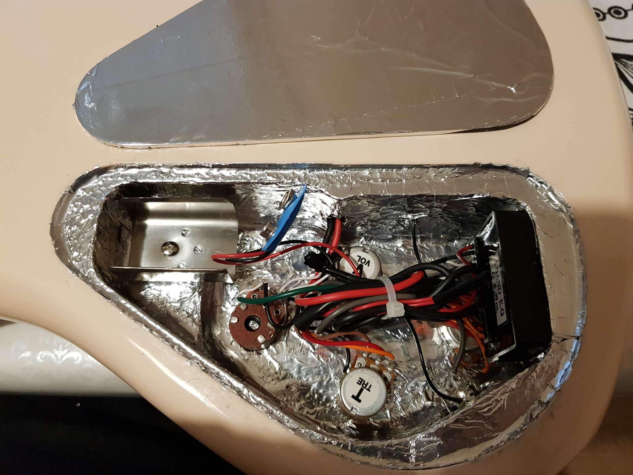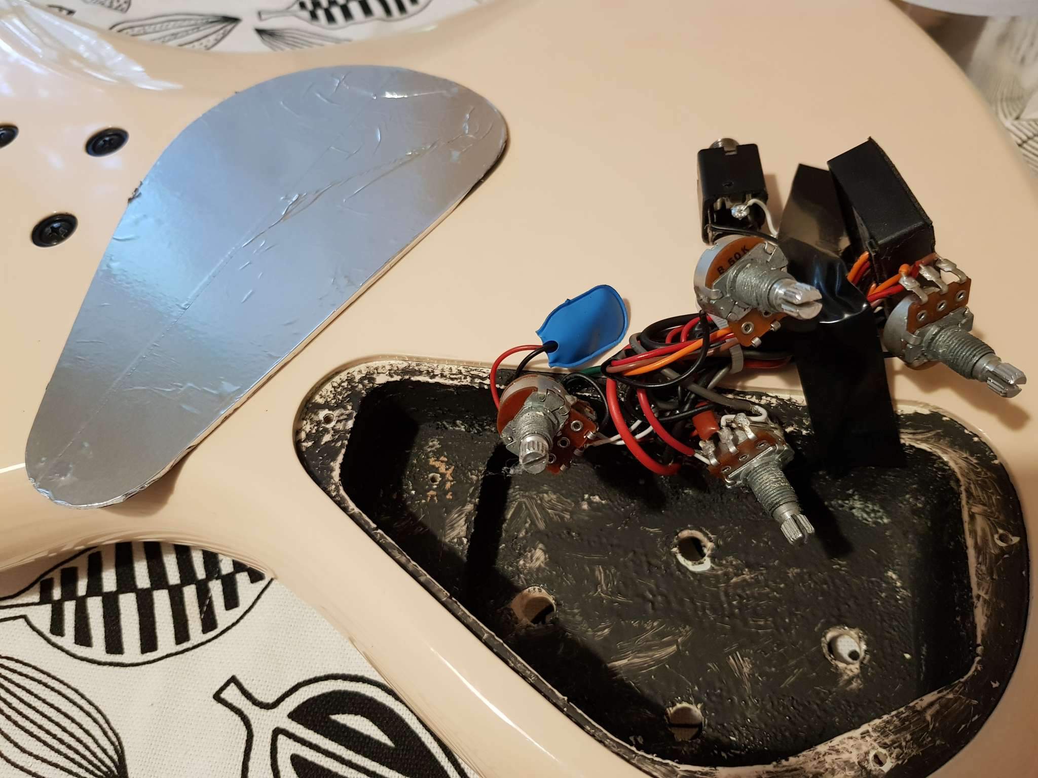 Проблема: высокочастотный фон с пробивающимся радио. Гитаре лет 8, долго лежала без дела, год назад такой проблемы точно не было.