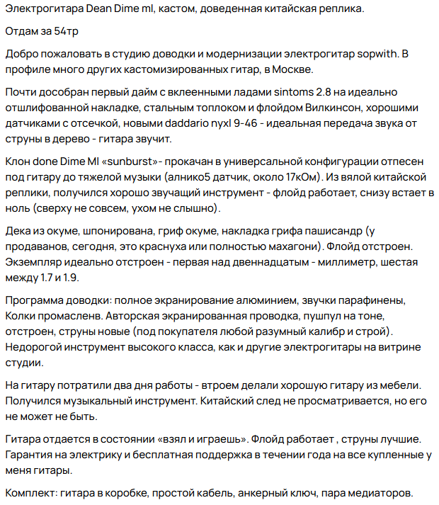 Такой вопрос возник , искал я себе инструмент (А именно Dean ml) на Авито , большая проблема в том что там продают в основном Китай ( не берем мега кастом шопы которые продают свои изделия за 300+к