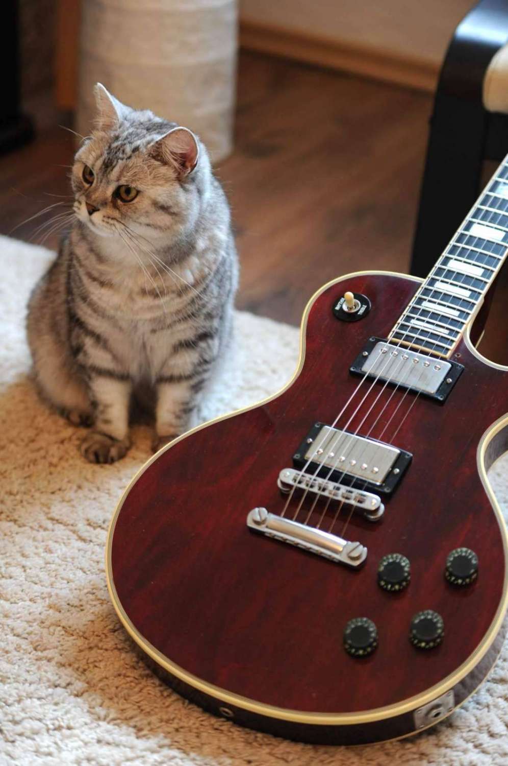 Роман Шкондин,нет это не Решка! Обычный флеймовый ЛПК`93 Полностью вернул ей первозданный вид! Вот-так она выглядела при покупке (и дальнейшая трансформация)! Какие-то "левые" Сеймура, бридж с микроподстройкой, самопальный тембрблок (хорошо,что родной шел в комплекте) В общем: нашел дачи 490/498 из 90-х ,ТОМ "Нешвил" Шаллеровский (ставили в сток в то время),остальную фурнитуру: спидкнобсы,пыптик переключателя звуканов,гровера,пикгард, привезли с eBAY! В общем как-то так!