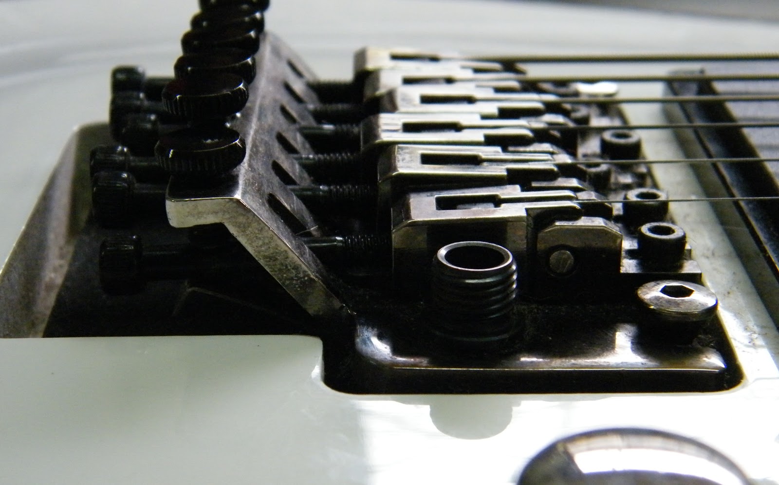 5) Если струны изначально опущены совсем, под флойд (между корупсом и машинкой) положить что-то мягкое, чтобы из-за натяжения пружин флойд не повредил корпус.