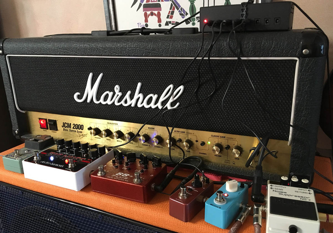 Дисторшн - Boss DS-1, только недавно проскакивал здесь обзор, где на нем нарулили звучание, очень близкое к AC/DC
