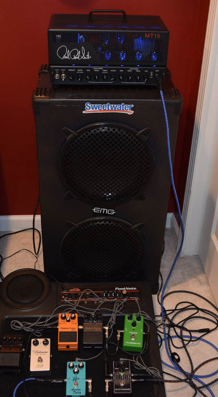 А звук был отличный, хотя у самого PRS MT15 родной перегруз просто зверь, но тихо не поиграешь, поэтому в основном я только через педальки и в чистый канал, который у этой ламповой головы намного лучше транзисторного усиления.