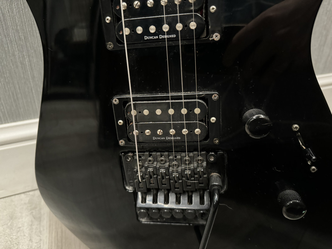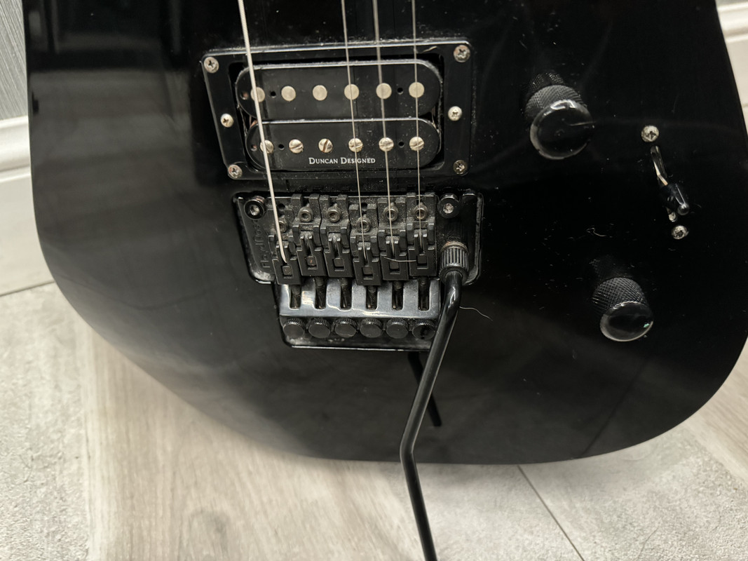 Уфффф, спрси чего-нить полегче. У Jackson'a всё такое одинаковое..... Какой-то недорогой Soloist, видимо китайский или индонезийский, судя по дешевым китайским звучкам "Duncan Deisigned" и левому флойду.... Если тщательно привести его в порядок после того, что с ним и его хозяевами случилось, тысяч за 20 можно продать, наверное...
