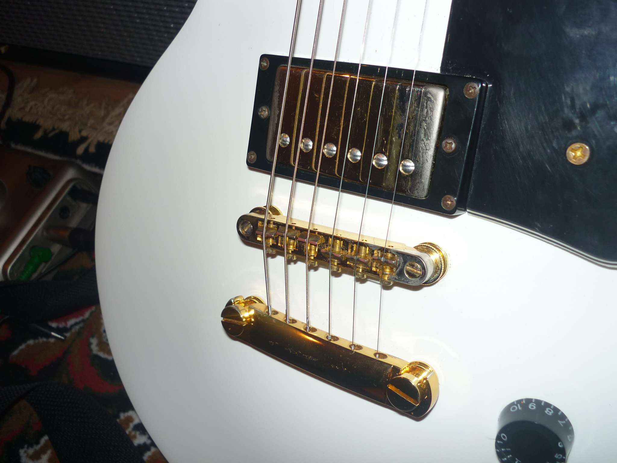 Здравствуйте.Вот я решил настроить мензуру тк как я её не настраивал ни разу) Вообщем настраивал всё как надо , пользуясь тюнером , открытая струна и на 12 ладу должна быть та же нота.. 1,2,3,5,6 нормально настроил,нота на 12 такая же как и на пустой.. Но вот 4 струну никак не могу настроить. Уже в максимум порожек вкрутил к грифу и всё равно не такая нота. по тюнеру смотрю порожек надо ещё крутить к грифу что бы её поднять , но уже нету места куда крутить.. что делать подскажите? Струны новые Dunlop 11-50. Гитара Gibson LesPaul...