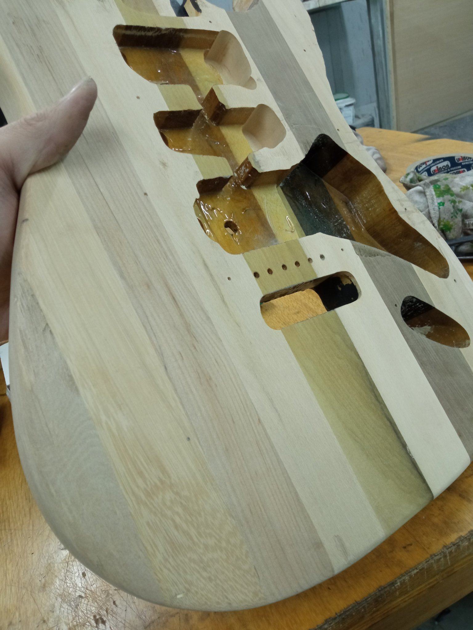 Ребята, прошло много лет, хз, зайдëт ли кто-то ещё в эту тему. У меня такая же. Меня дëрнуло снять с неё лак. Как я думал. По лаком была 2-х слойная фанера-шпон, а вот под ним это чудо...