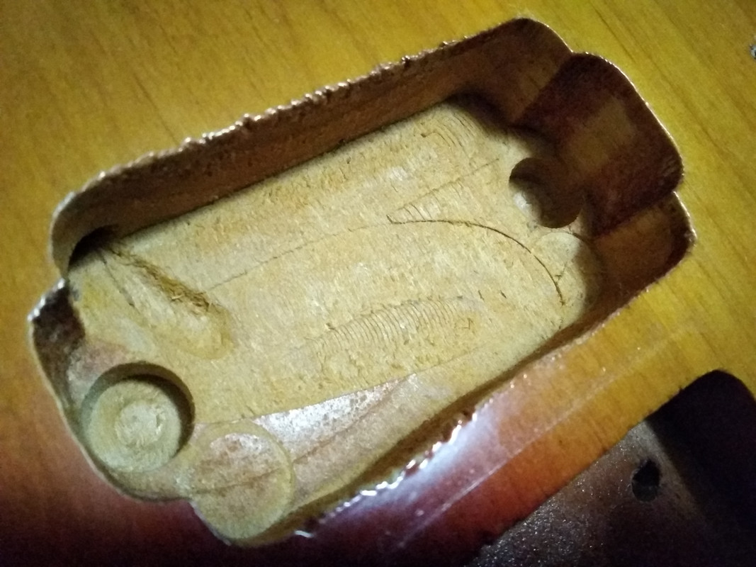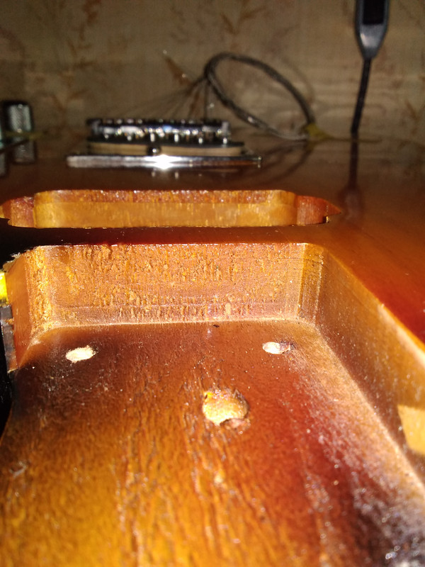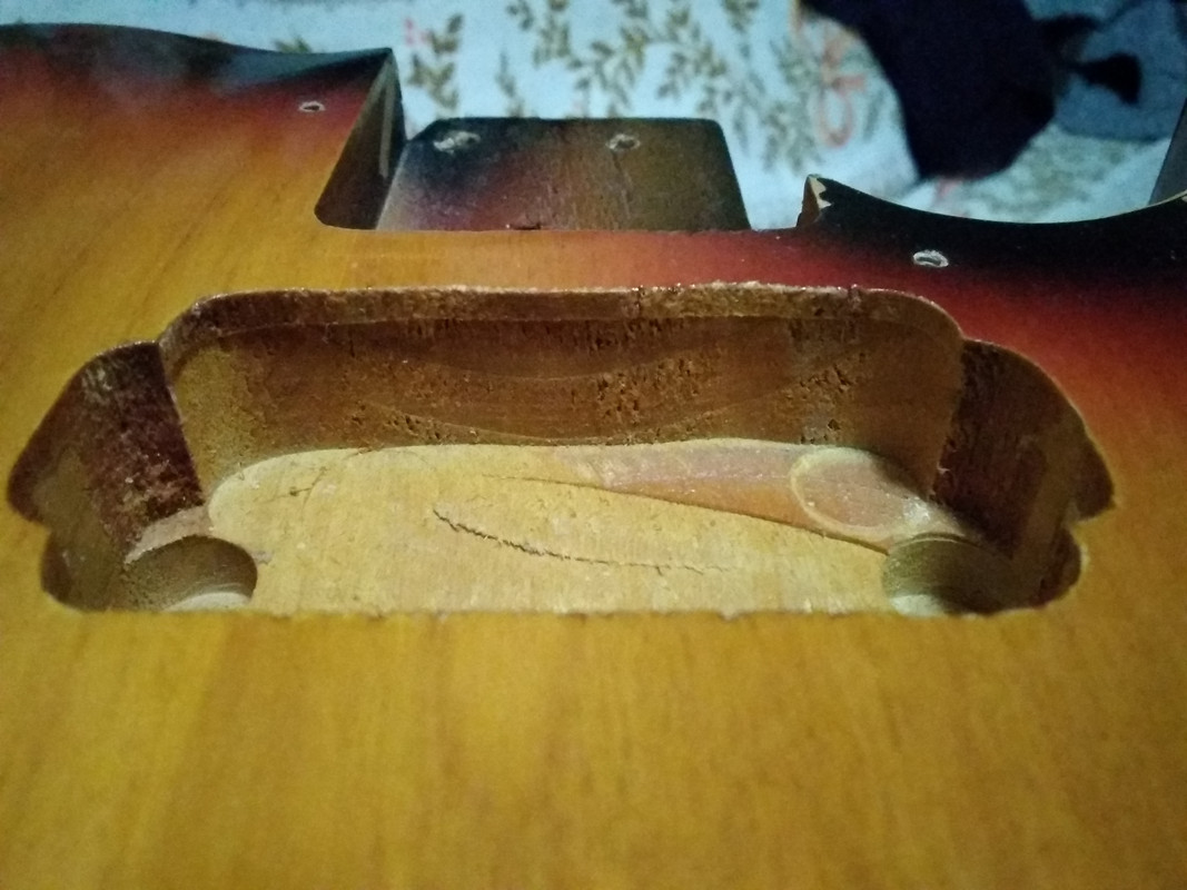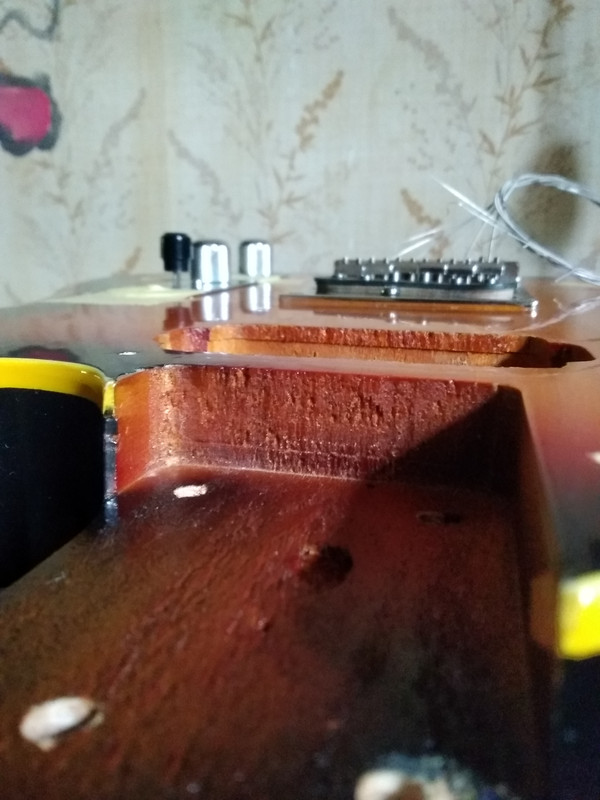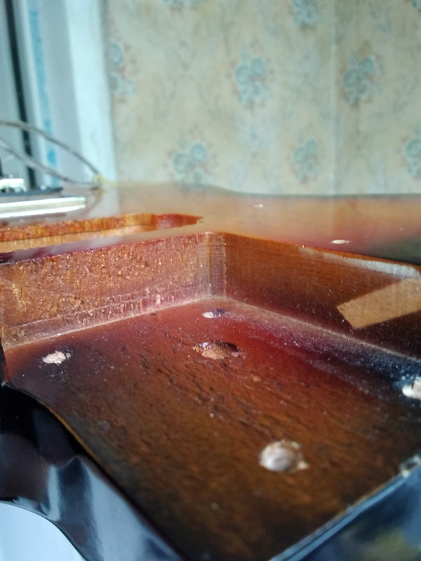 Тем более есть небольшой опыт фрезеровки, поэтому не могу представить что фреза такой глубины, как верхний слой, иначе бы не было расширения во втором слое настолько. Да, скорее просто основное дерево усохло больше. У самого сейчас буратинос на испытательном сроке (несколько месяцев) - тело из сосны, а топ (шпон) из дуба.