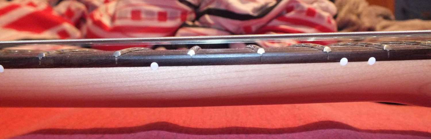 Настроил мензуру и струны. Стали звенеть с 12 по 20-последний лад струны с 3 по 1. Одна или две струны стали звенеть и о датчики. Опустил немного датчики, чтобы был зазор. Все равно звенят. Мензуру 6 струны настроил впритык - седло ушло назад до упора (что тут делать?)