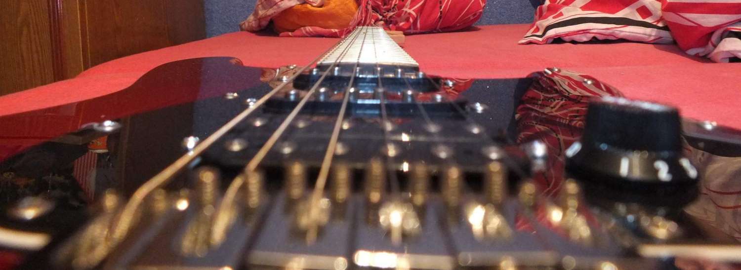 Затем вычитал про рекомендуемую высоту струн ~2мм от грифа на 12 ладу. Тут вот и начинаются непонятки. От чего считаются мм? От ладовых порожков, или от самого грифа (накладки)? Ладно, сделал 2мм на шестой струне от порожков (наверное так и надо). Опускал винтиками на седлах (так они вроде называются). Опустил все струны с небольшим шагом по руководству из интернета (6 - 2мм, 5 - 1,9 ну или т.п.).