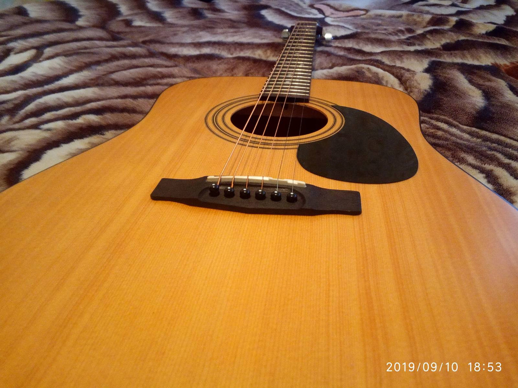 В общем предложили мне эту гитарку по выгодной цене. Взял в руки в роде бы всё ок, но услышал резкий запах химический изнутри. Понюхал в такой же гитаре дома, так же есть такой запах, но еле уловим. Начал разглядывать и увидел там какой-то лейкопластырь, на таком же корте только в другой цвете нет этого пластыря. Меня смутило. Начал сравнивать с той, что дома и её увидел разницу в отверстиях анкера. С виду всё целенькое, гитару чуть протереть и порядок. Струны высоковато стоял, ну всё это нужно регульнуть.
