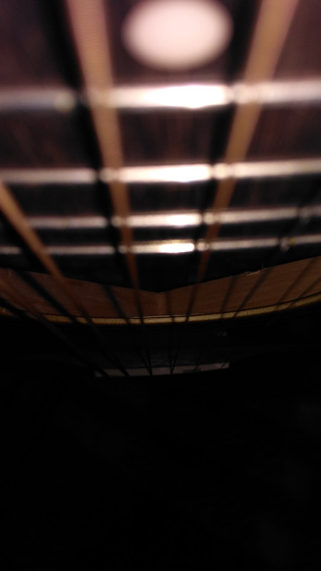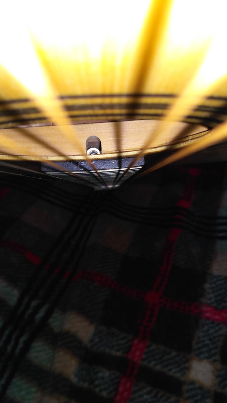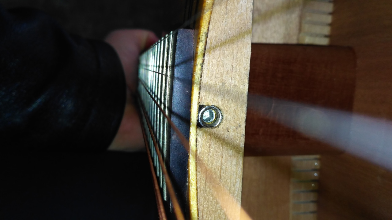 Первое фото моей и там видно, что отверстие большое и анкер ближе к грифу, а на другой гитаре отверстие с другое под размер гайки. Может это разные года и по разному сделаны. Кто, что скажет ? Гитара строит, но почему-то первая струна странно звучит, хоть даже по тюнеру показывает, что настроена. Струны видно затёртые, поменять нудно бы. Хозяин утверждает, что с магазина ничего не трогал и не делал, струны не меня гриф не крутили. Но на бридже есть следы наверное от ключа и шпилька от шестой струны выше других была, надавил дозагнал ее правда не до конца, пальцу больно. Не знаю, в что верить и смущает разница которую я описал выше. Накладка не убитая, чистенькая, а пикгард в царапинах не хило. Похоже интенсивненько играли. Хотя я до сих пор не понимаю как можно его царапать