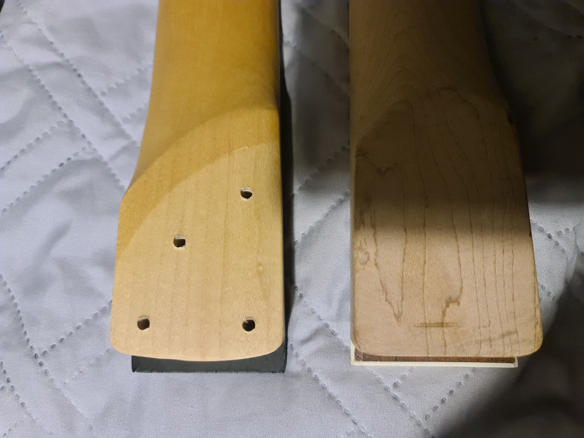У меня загвоздка - клен пятки грифа ибаньез с ятобой на 2 мм длинней, чем клен пятки родного грифа деки с палисандром