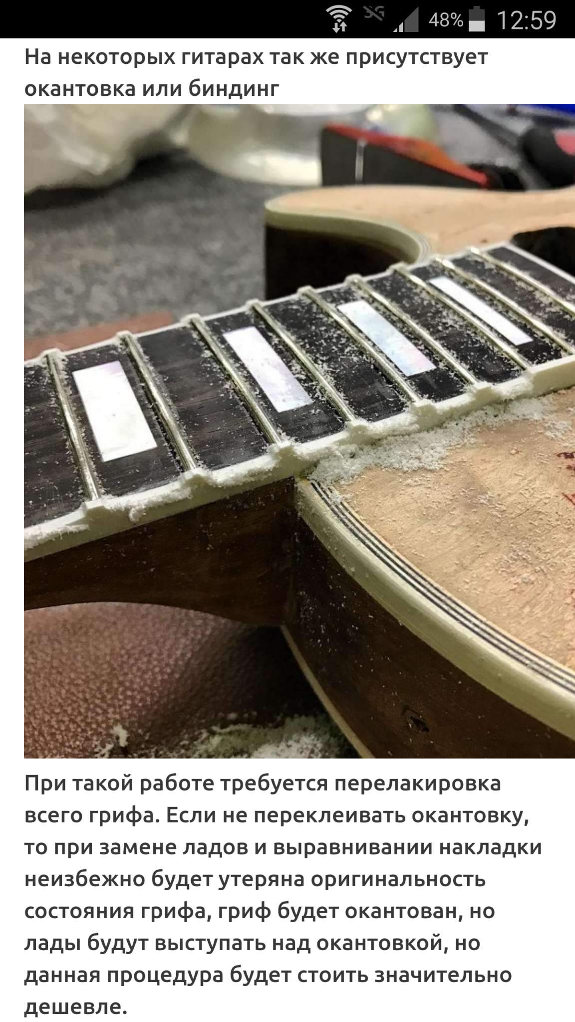 Спасибо заранее (просьба не советовать заказать гриф с aliexpress,типа реально дешевле,чем новые лады ставить или "восстанавливать" существующие)