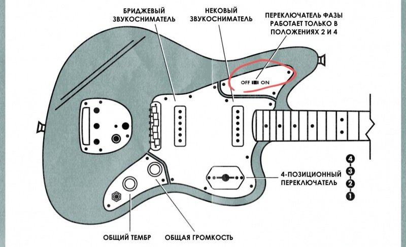 Т.к. волны от струн и звукоснимателя гитары хаотичны и не могут абсолютно сложится или вычитаться, то переключения фазы дают различные "эффекты" звучания, пощелкав этим тумблером можно выбрать по вкусу