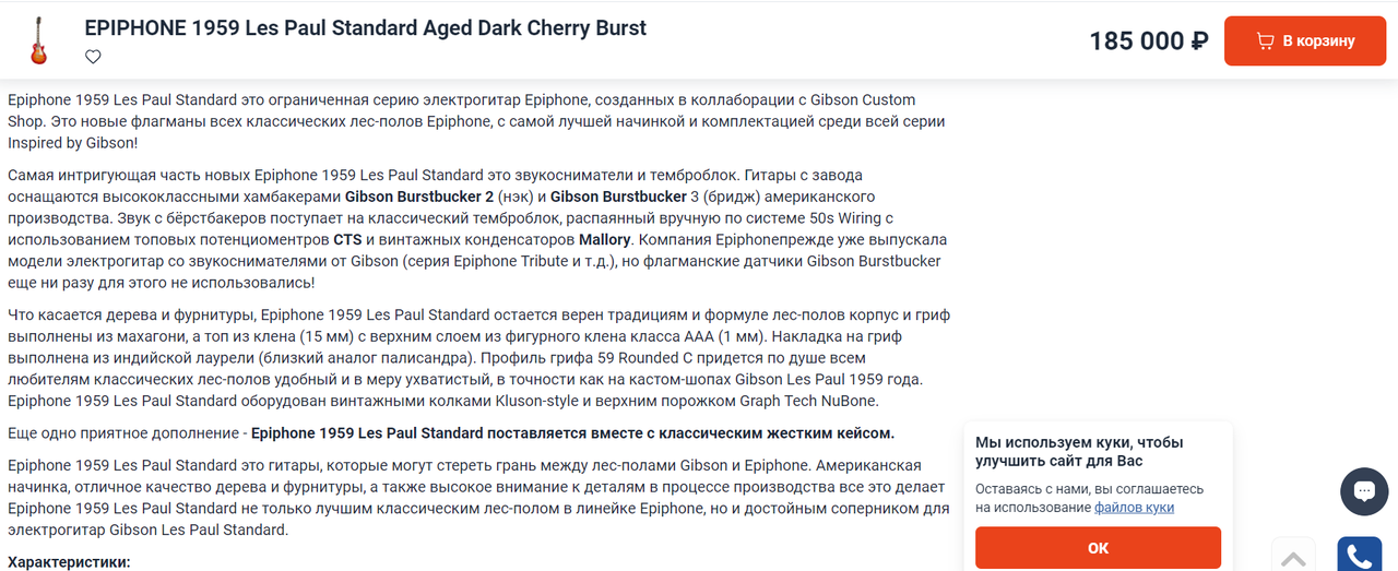 А, это предыдущая версия навороченных эпифонов, эти по 900 были, по-моему. У меня тоже 59ый эпифон был, только образца 2009го. Такая же комплектация, как и у этого, только глянцевый и с той угловатой эпифоновской башкой. Я не понимаю, почему они упорно ставили на эпифоны бёрстбакеры 2 и 3, ведь 1 и 2 лучше.