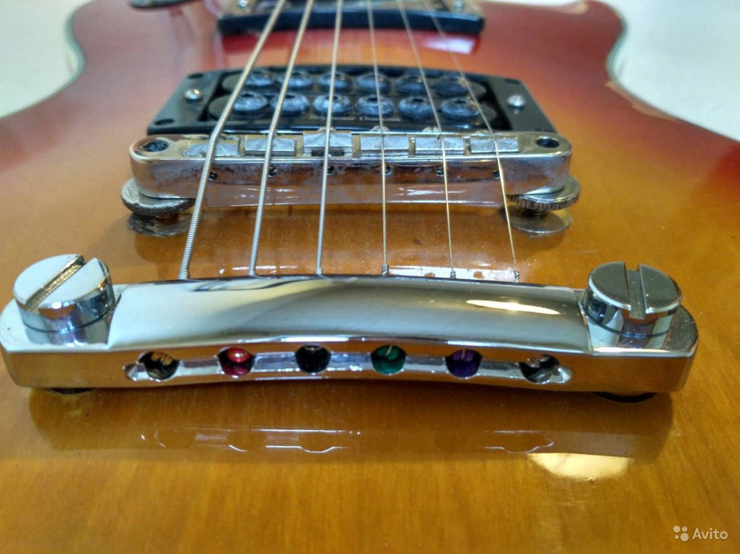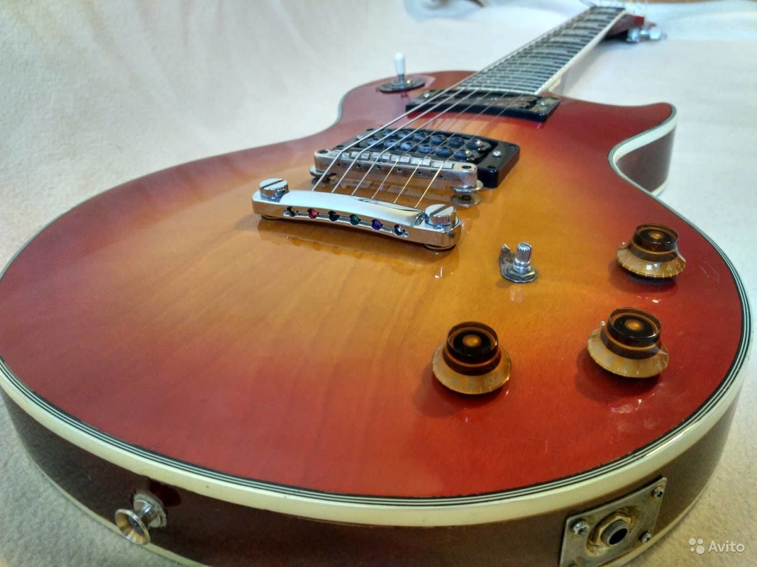 В общем-то из-за чего весь сыр-бор. Встретился на просторах авито экзымпляр с названием как указано в шапке темы. Владелец говорит следующее: "Признаюсь, эта гитара является репликой. Производство Япония. В этом году (1977), на сколько мне известно было совместное производство Гибсон и в Японии, в последствии производство гитар Гибсон в Японии было закрыто. Но вот эта серия, досталась мне. И по звуку она ничем не хуже старшего брата. " Что данная гитара участвовала в музыкальном проекте, ссылку с живого выступления оставлю. Гитара с коцаками, потеряли заднюю крышку переключателя, и одну "крутилку".