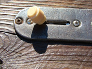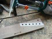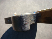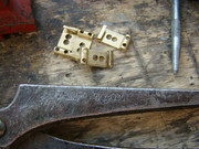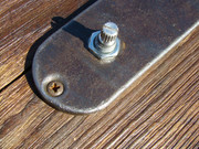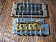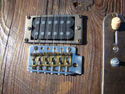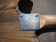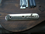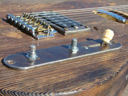 ... и добавил:следую канонам жанра, все детали этого прожекта должны быть состаренными и бывалыми. вот бридж - пластину его я пошарпал шкуркой, но сёдла сколько ни шкурь - от китайскости их вида никуда не уйти. поэтому я решил сделать новые сёдла. вырезал их из полоски латуни, загнул, подсостарил, и собрал бридж . теперь он выглядит винтажно и олскульно - всё ровно так, как и полагается