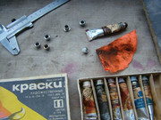... и добавил:продолжаю - пластина темброблока - совершенно не подходит сюда нарядная хромированная пластина. можно было конечно пошарпать её шкуркой, но мне хотелось очень очень ржавости. да, можно макнуть её в кислоту - поржавеет. но всё равно она будет выглядеть на мой взгляд не достаточно олдскульно - получится тонкий свежий равномерный слой ржавчины. а он совсем не такой, как ржавчина, полученная естественным путём.
