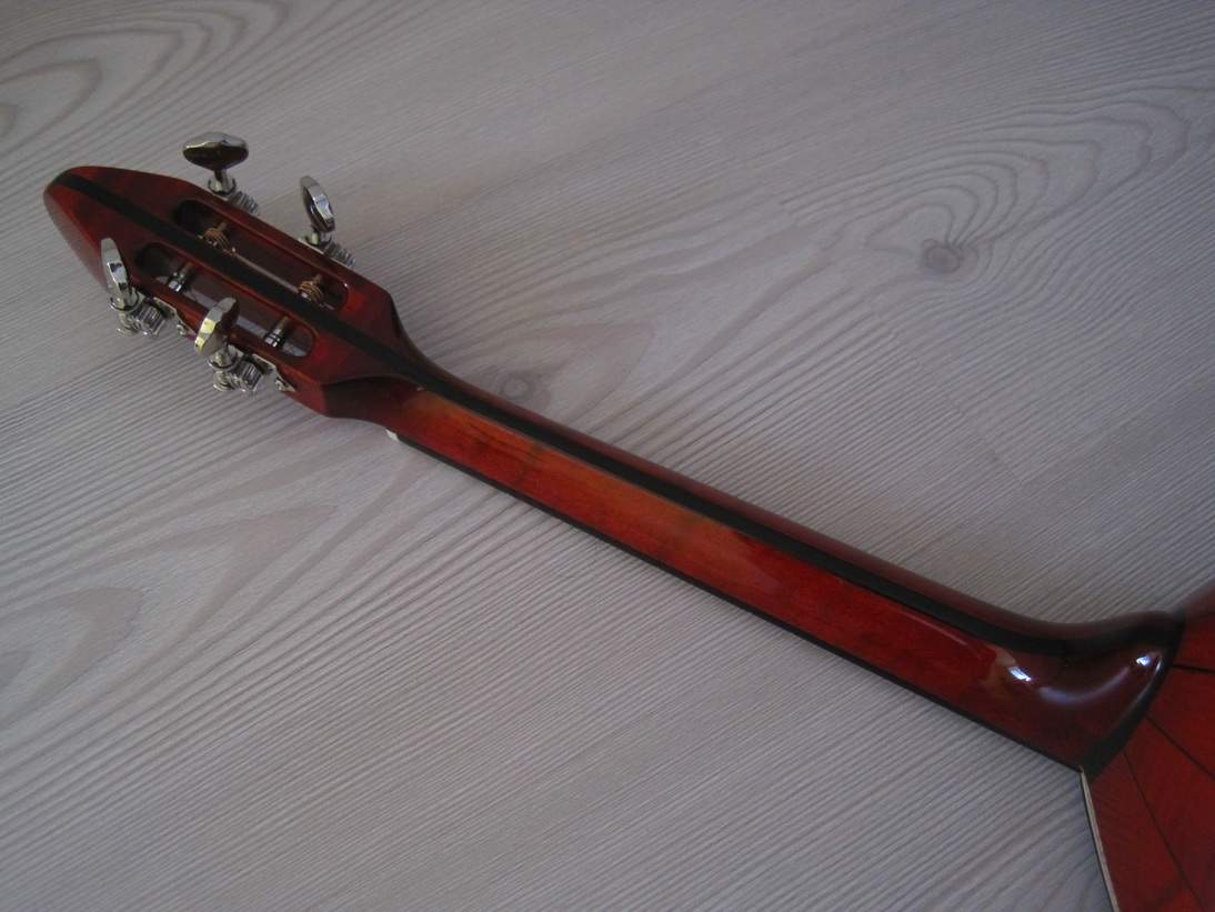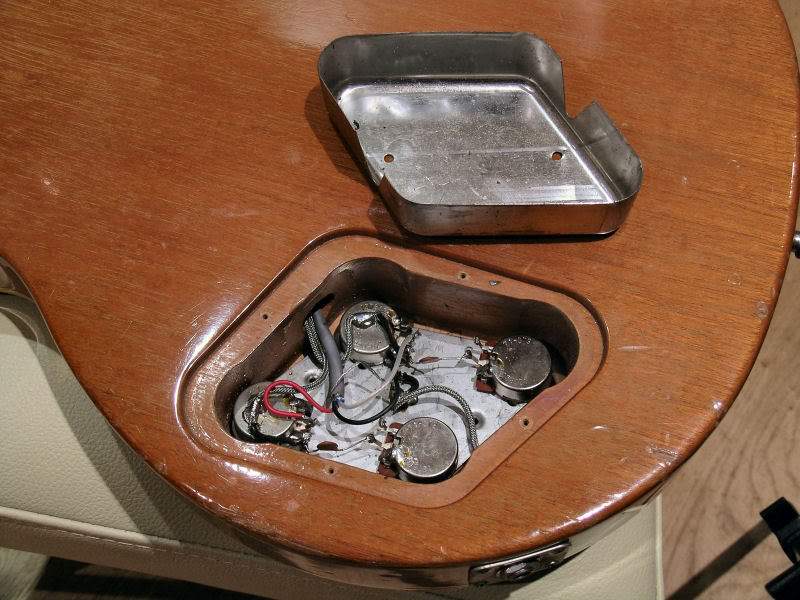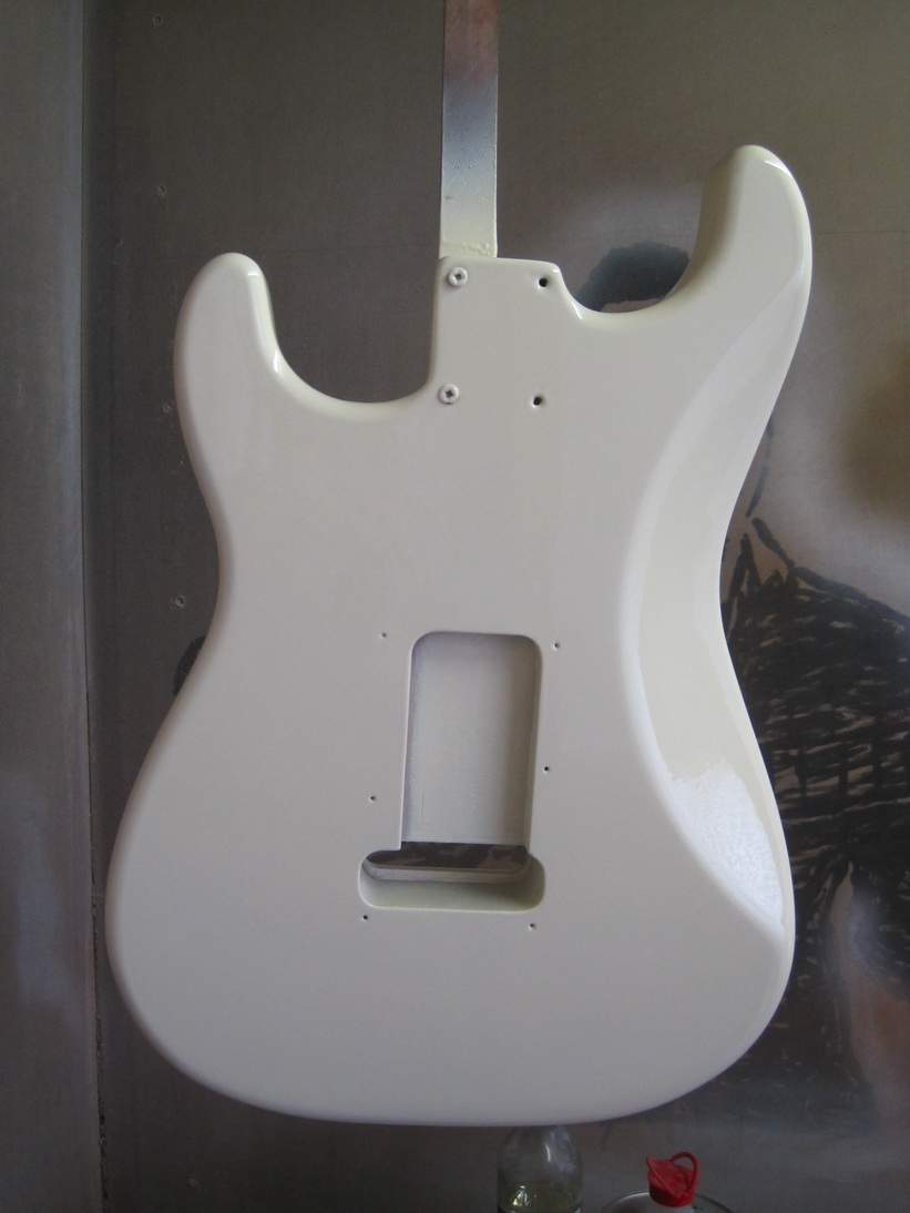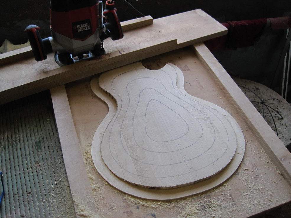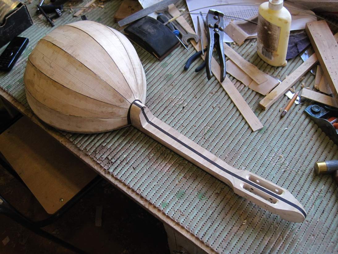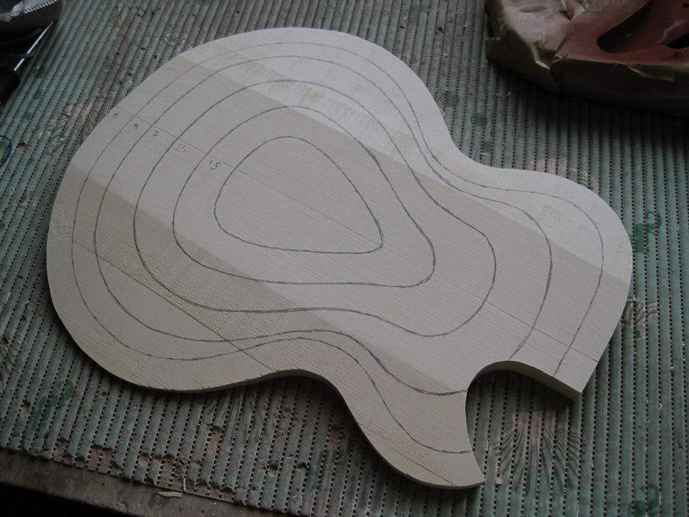 Сдираем всё шпателем с нагревом феном и обнаруживаем корпусец из 7 кусков ольхи со шпоном сверху, чтобы склейки сквозь краску не проступали. Красим двухкомпонентным акрилом. Толщина покраски в итоге около 0.3-0.5 мм.