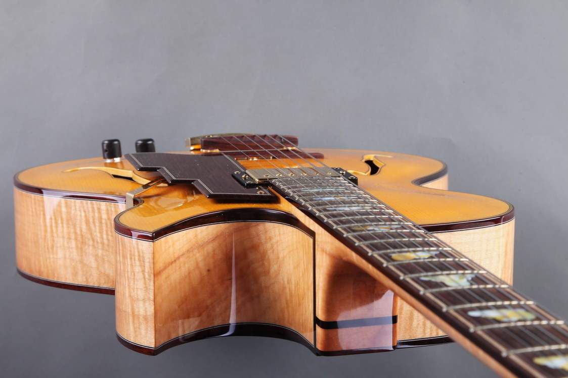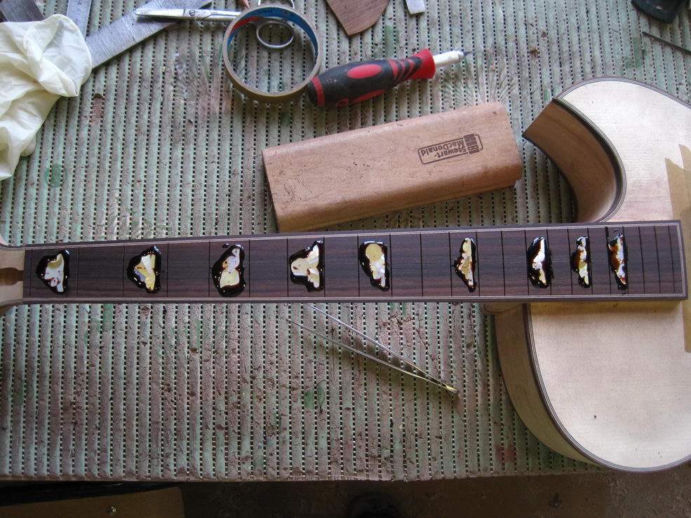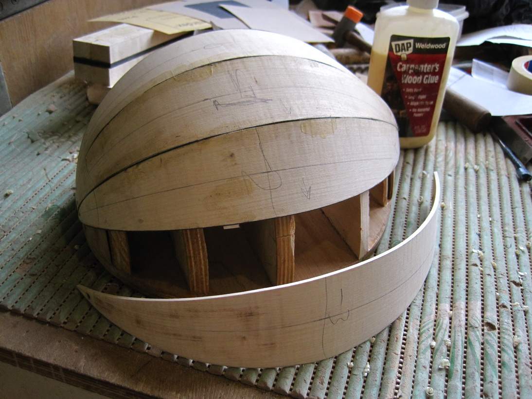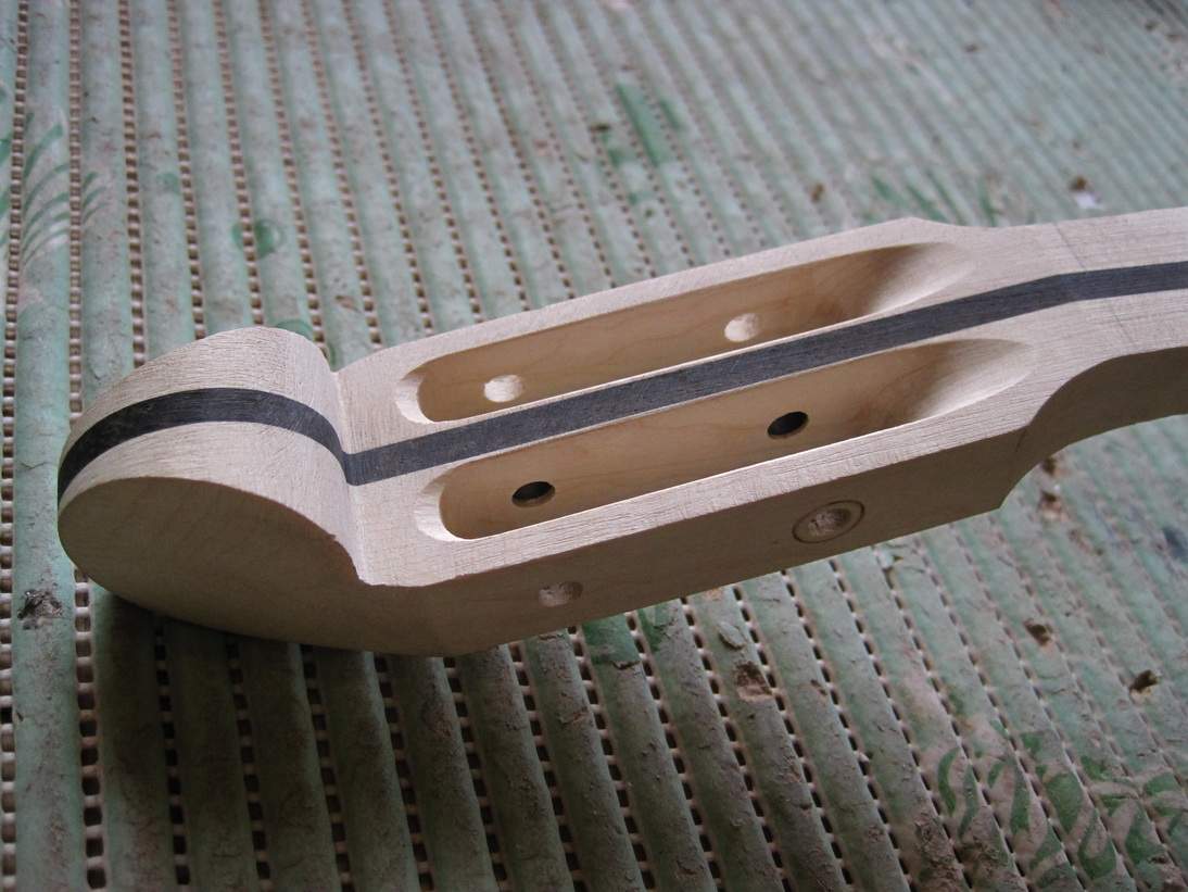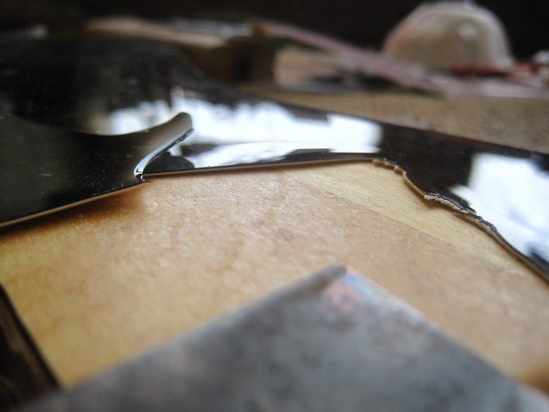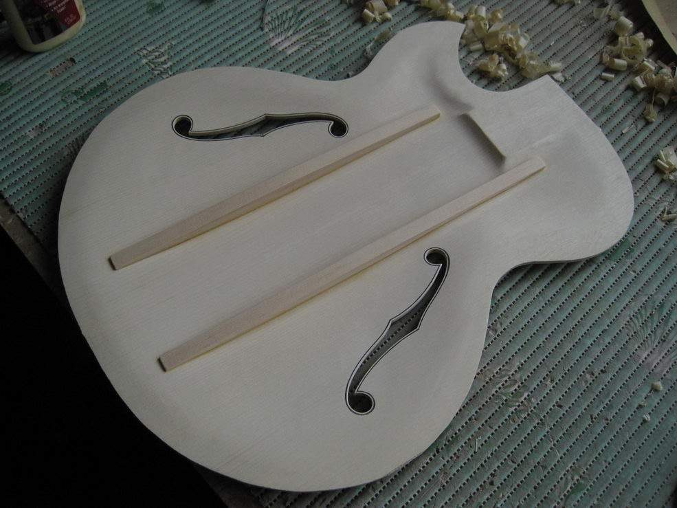 Сдираем всё шпателем с нагревом феном и обнаруживаем корпусец из 7 кусков ольхи со шпоном сверху, чтобы склейки сквозь краску не проступали. Красим двухкомпонентным акрилом. Толщина покраски в итоге около 0.3-0.5 мм.