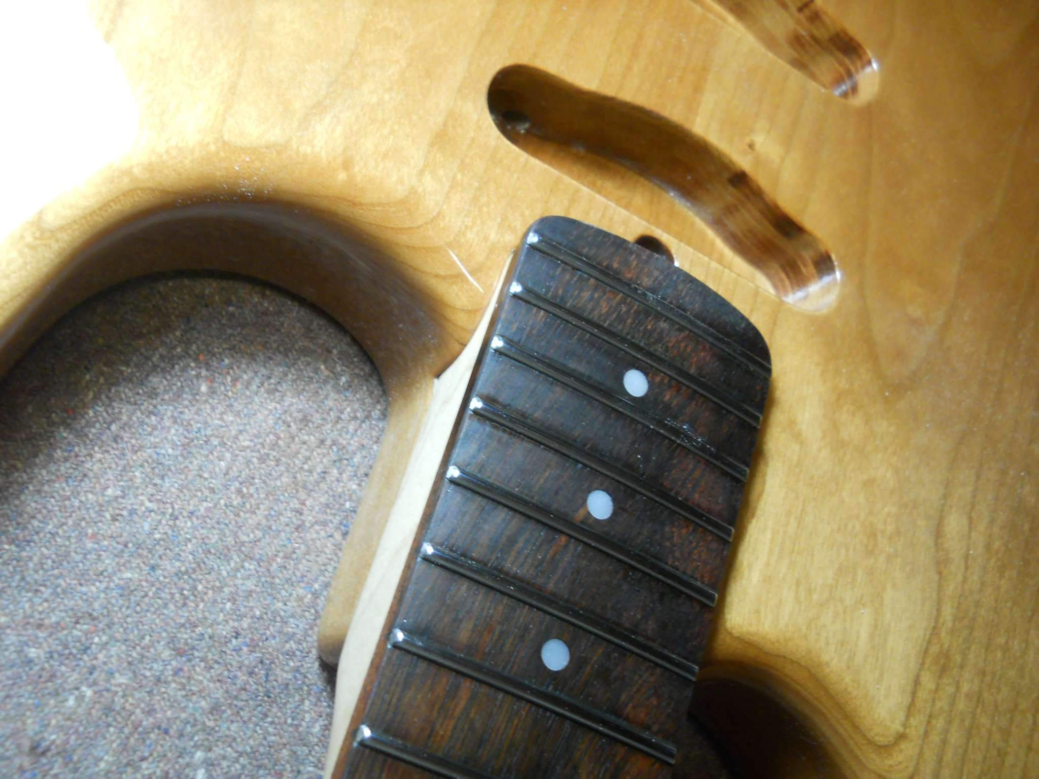 GreenRV, Какая глубина пропила под порожек на вишневом страте?уж слишком высокие лады и широкие вроде там стоят.