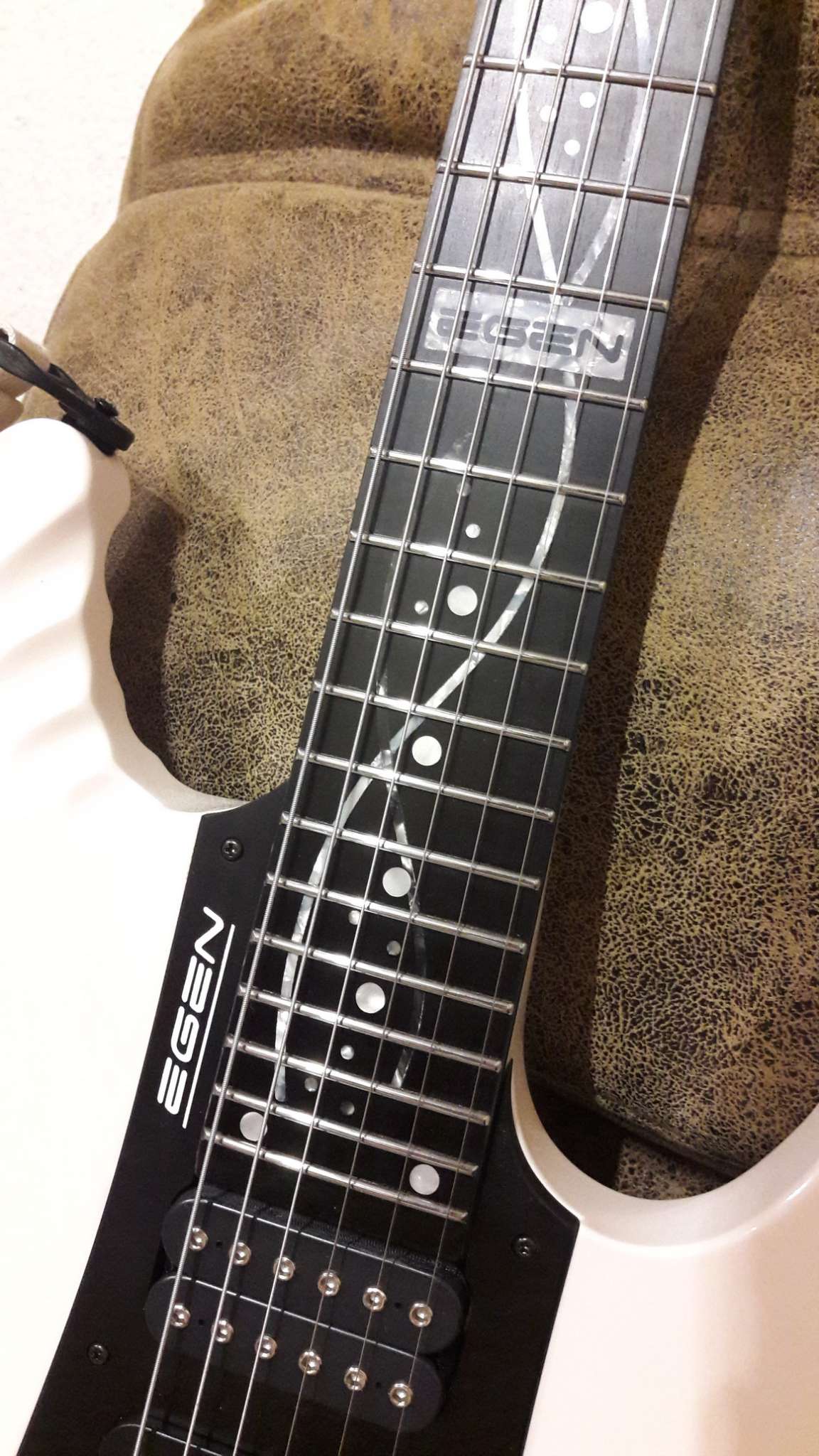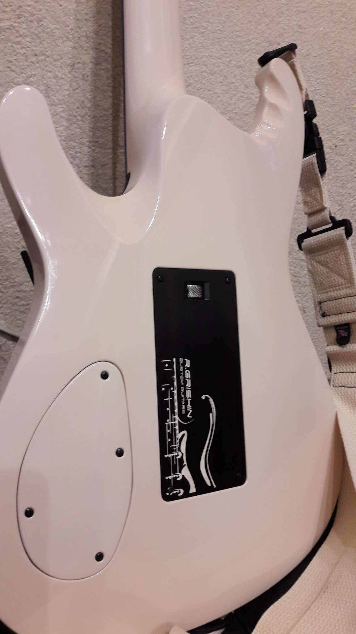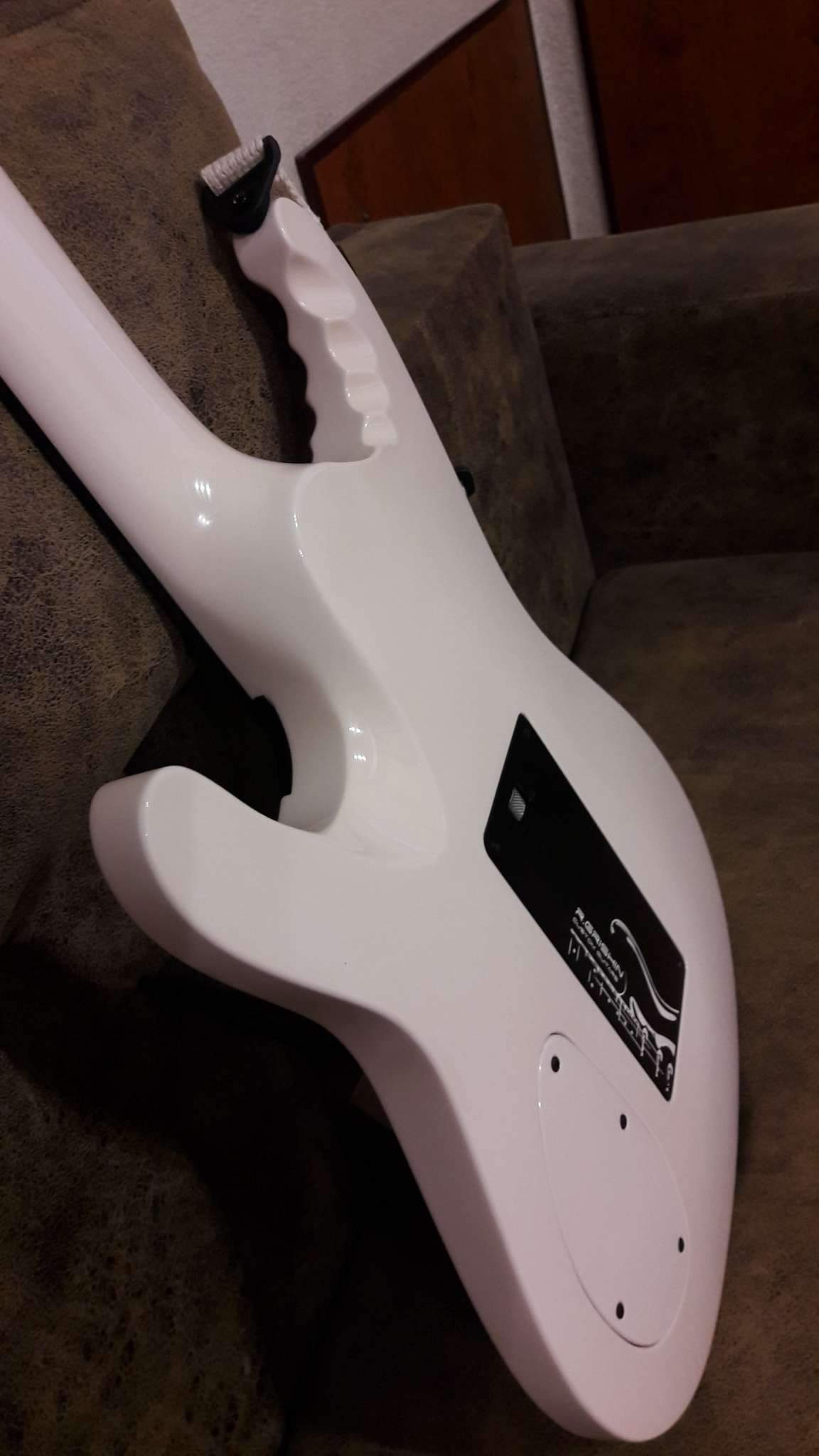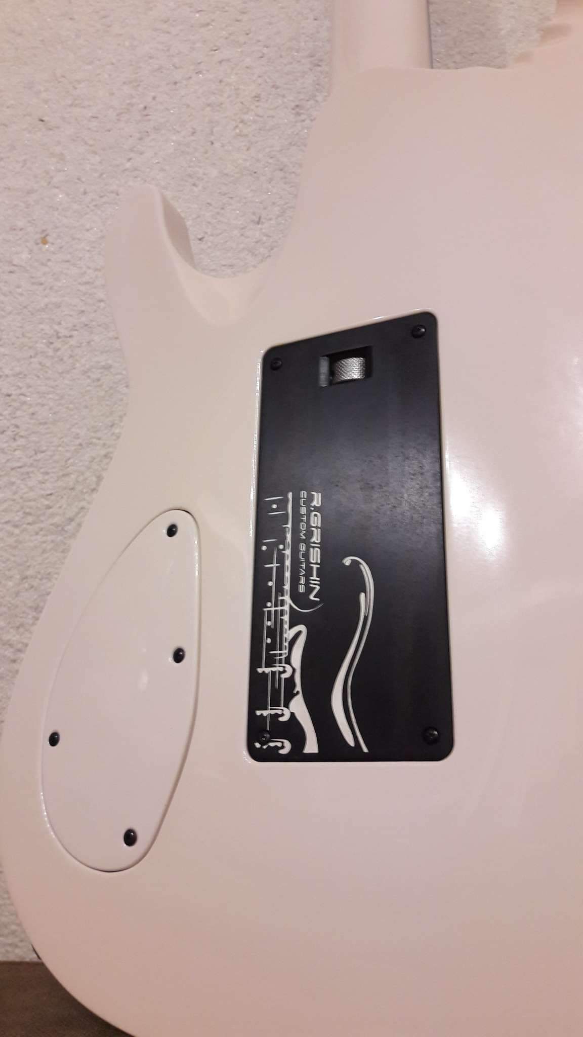 Закончилось томительное ожидание очередного Гришинского творения. Очень доволен. Из того, что задумывалось, осталось только внешнее напоминание о прототипе (IBANEZ EGEN) и сет звукоснимателей, к слову сказать, очень удачный. Глянец покрытия и мат эбена (под маслом), белое и чёрное, плавность форм корпуса и вызывающая резкость в голове грифа. Оговорюсь, на что то мне пришлось сподвигнуть мастера, где то он спустил меня с небес. Рад, что моя задумка и его руки и опыт вместе создали этот инструмент. Хочется сказать, что гитара выглядит лучше, чем звучит. Но.....!!! как она звучит!!! (выложу позже, обещаю). СПАСИБО, Виталич!!!