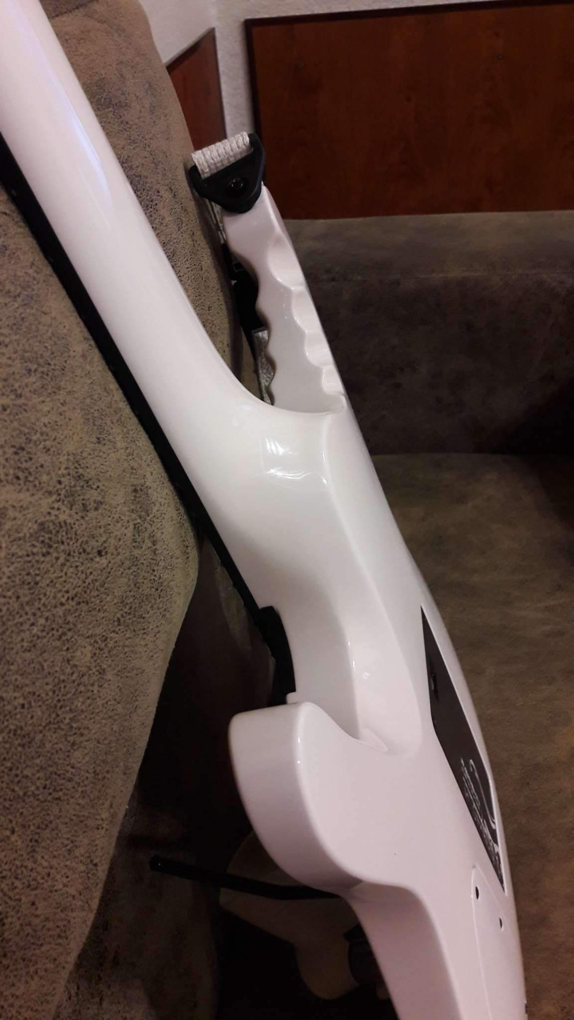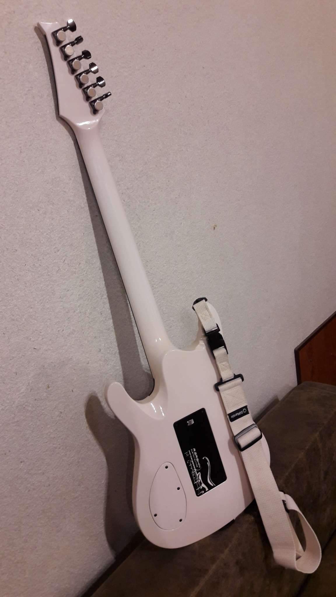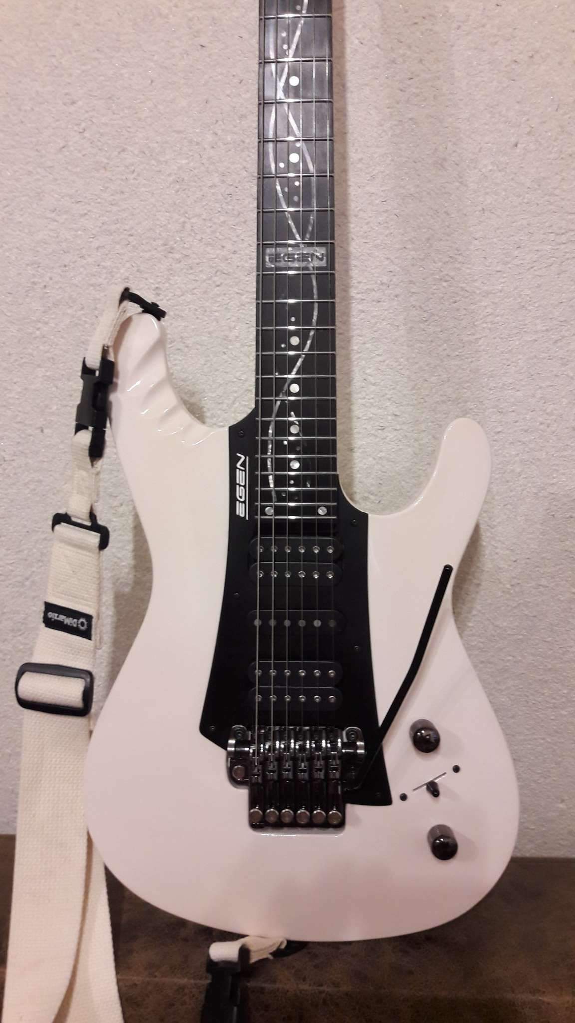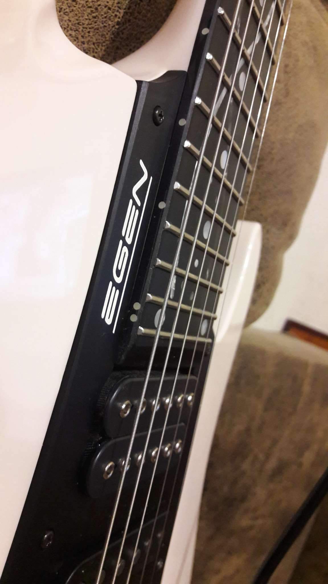 Закончилось томительное ожидание очередного Гришинского творения. Очень доволен. Из того, что задумывалось, осталось только внешнее напоминание о прототипе (IBANEZ EGEN) и сет звукоснимателей, к слову сказать, очень удачный. Глянец покрытия и мат эбена (под маслом), белое и чёрное, плавность форм корпуса и вызывающая резкость в голове грифа. Оговорюсь, на что то мне пришлось сподвигнуть мастера, где то он спустил меня с небес. Рад, что моя задумка и его руки и опыт вместе создали этот инструмент. Хочется сказать, что гитара выглядит лучше, чем звучит. Но.....!!! как она звучит!!! (выложу позже, обещаю). СПАСИБО, Виталич!!!