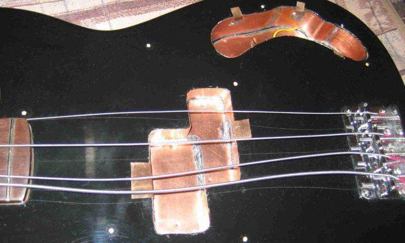 Осилил и прочел все... При всей простоте и аккуратности, экранировка графитом мне как-то не по душе, может быть я и не прав. В общем решил сделать медью. Фольги медной было мало, поэтому ее наклеил на накладку, а полости под звучки делал медными пластинами (толще фольги, но все же не очень толстыми). Вот пара фоток. Телик и Пресижн. последний еще в работе, а телик получился очень даже тихим, например стало возможным на одном бриджевом сингле через овердрайв играть и практически без фона, про чистый звук я уже и не говорю. Бас еще в работе.